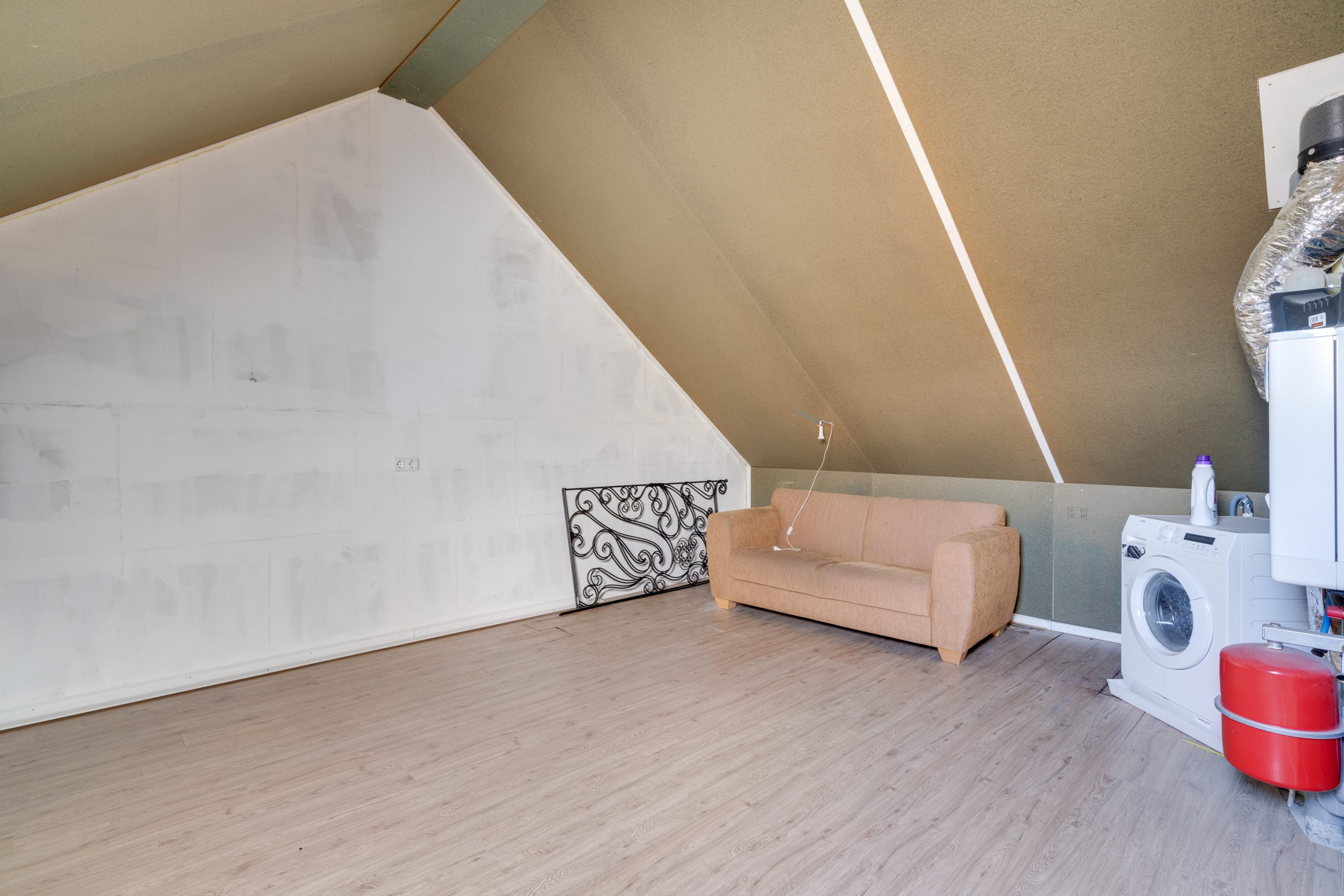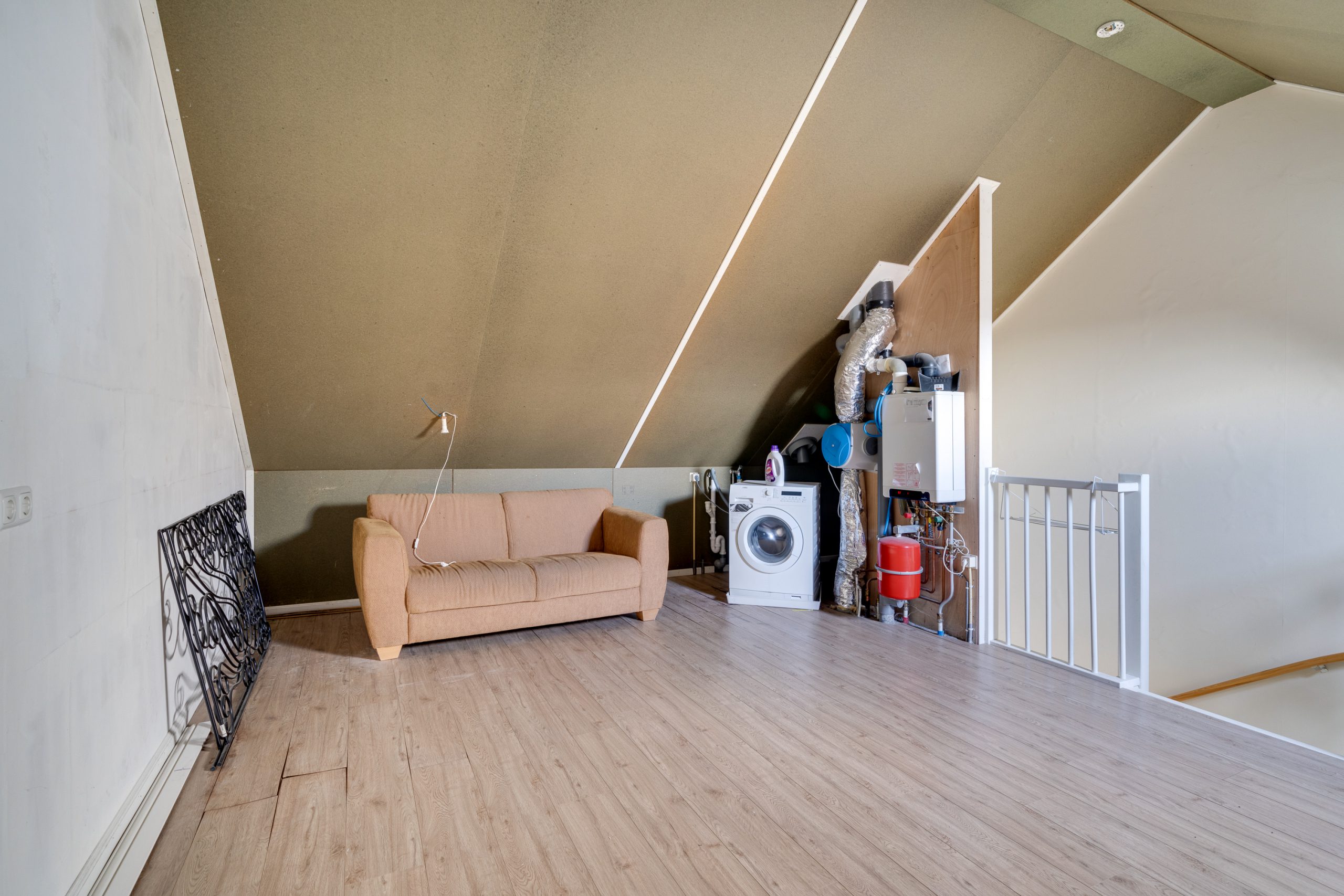2e verdieping: Bergzolder voorzien van extra bergruimte in schuinte, wasmachine aansluiting, ventilatieunit en een CV ketel (Intergas uit 2011). De gehele verdieping is voorzien van laminaatvloer.