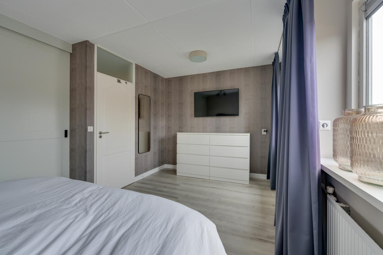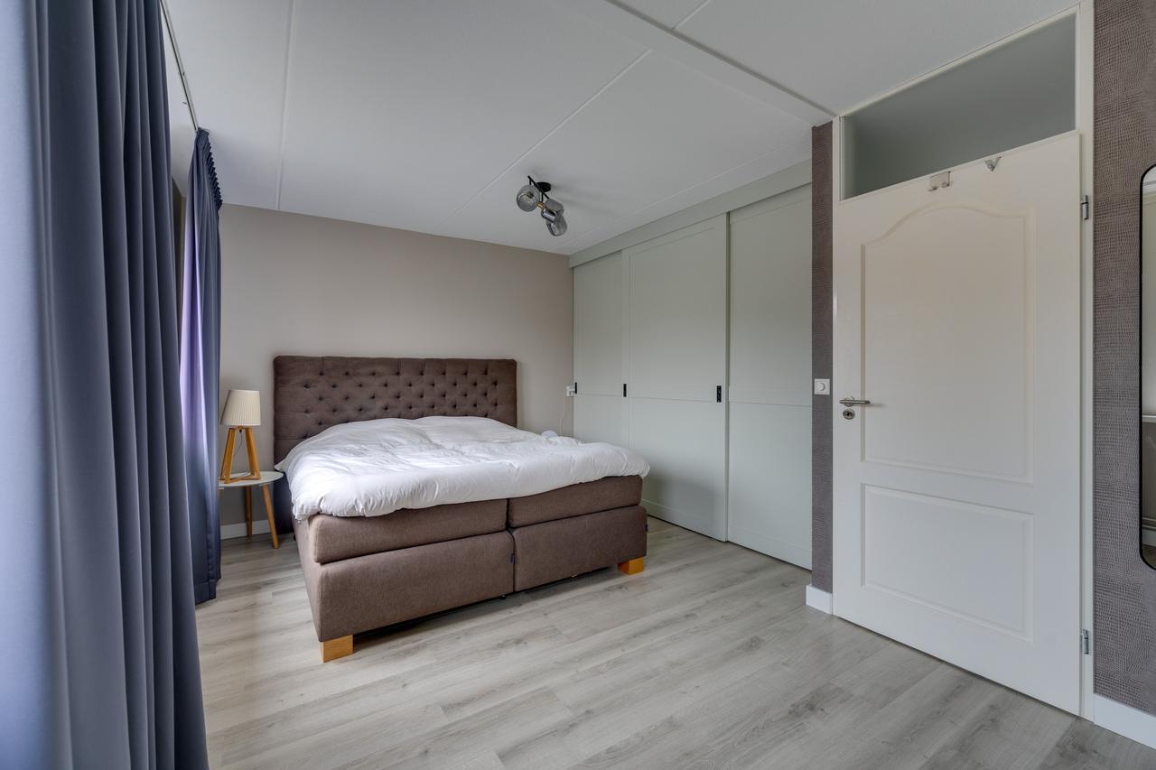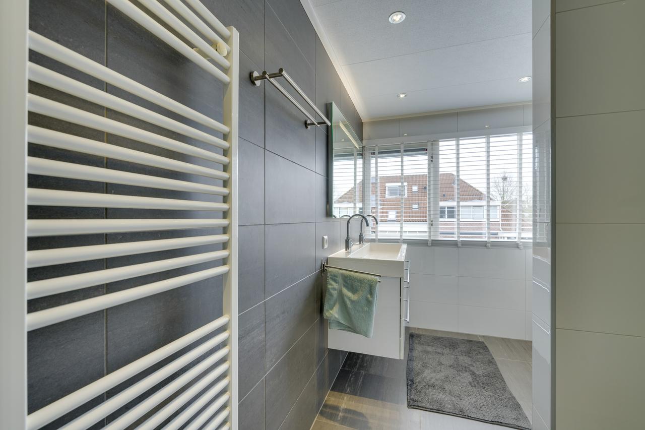 1e verdieping: Overloop met vaste trap naar 2e verdieping, luxe betegelde badkamer voorzien van badmeubel, wandcloset, douche en vloerverwarming, achterslaapkamer voorzien van schuifkastjes in schuinte en een voorslaapkamer. De gehele verdieping is voorzien van laminaatvloer.