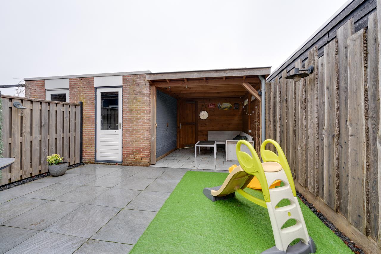 Aan de voorzijde gelegen aan een open ligging met voldoende parkeergelegenheid. De heerlijke besloten achtertuin is weliswaar gelegen op het noordoosten, maar door de grootte kun je achterin heerlijk genieten van het zonnetje. Lekker in alle rust en privacy relaxen onder de overkapping! En anders kun je altijd nog plaatsnemen in de voortuin die is gelegen op het zuidwesten.