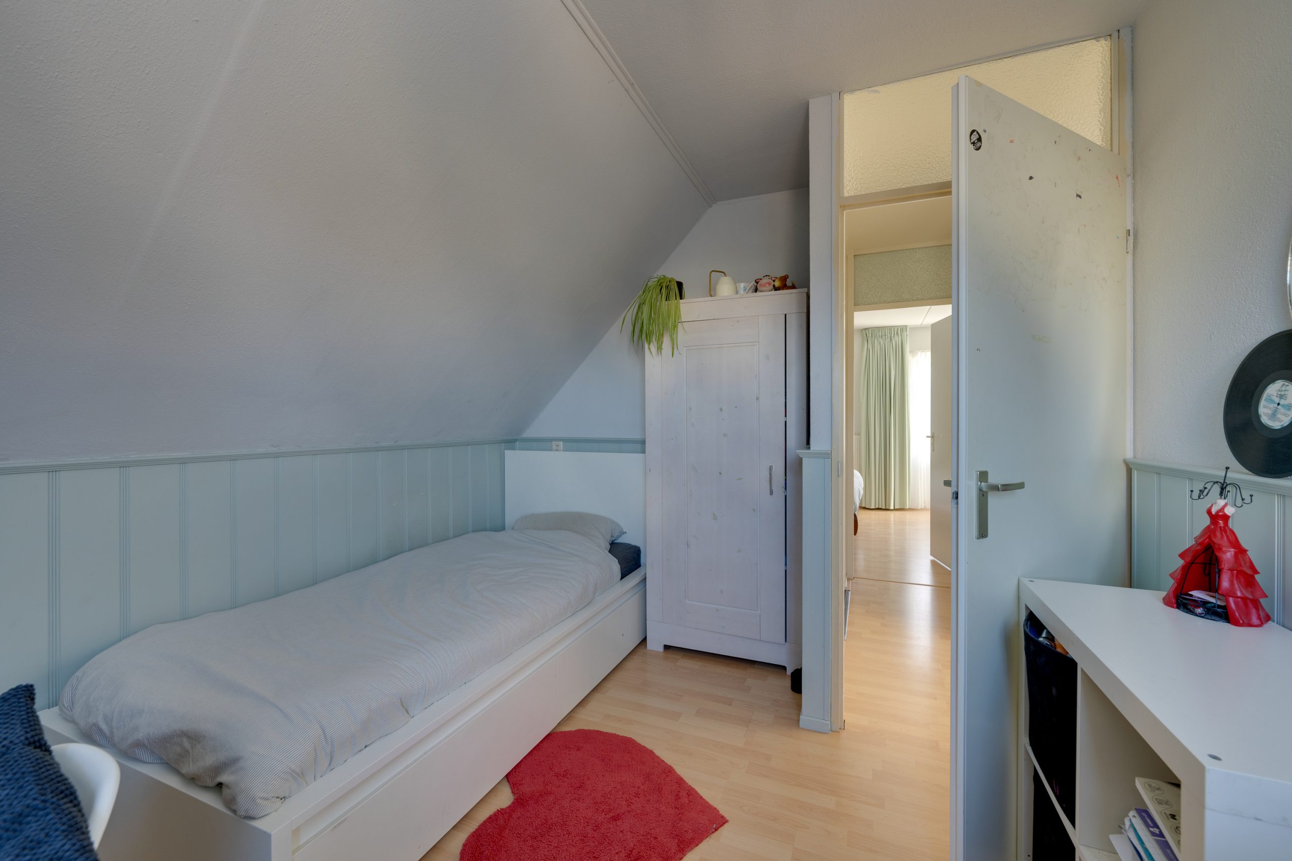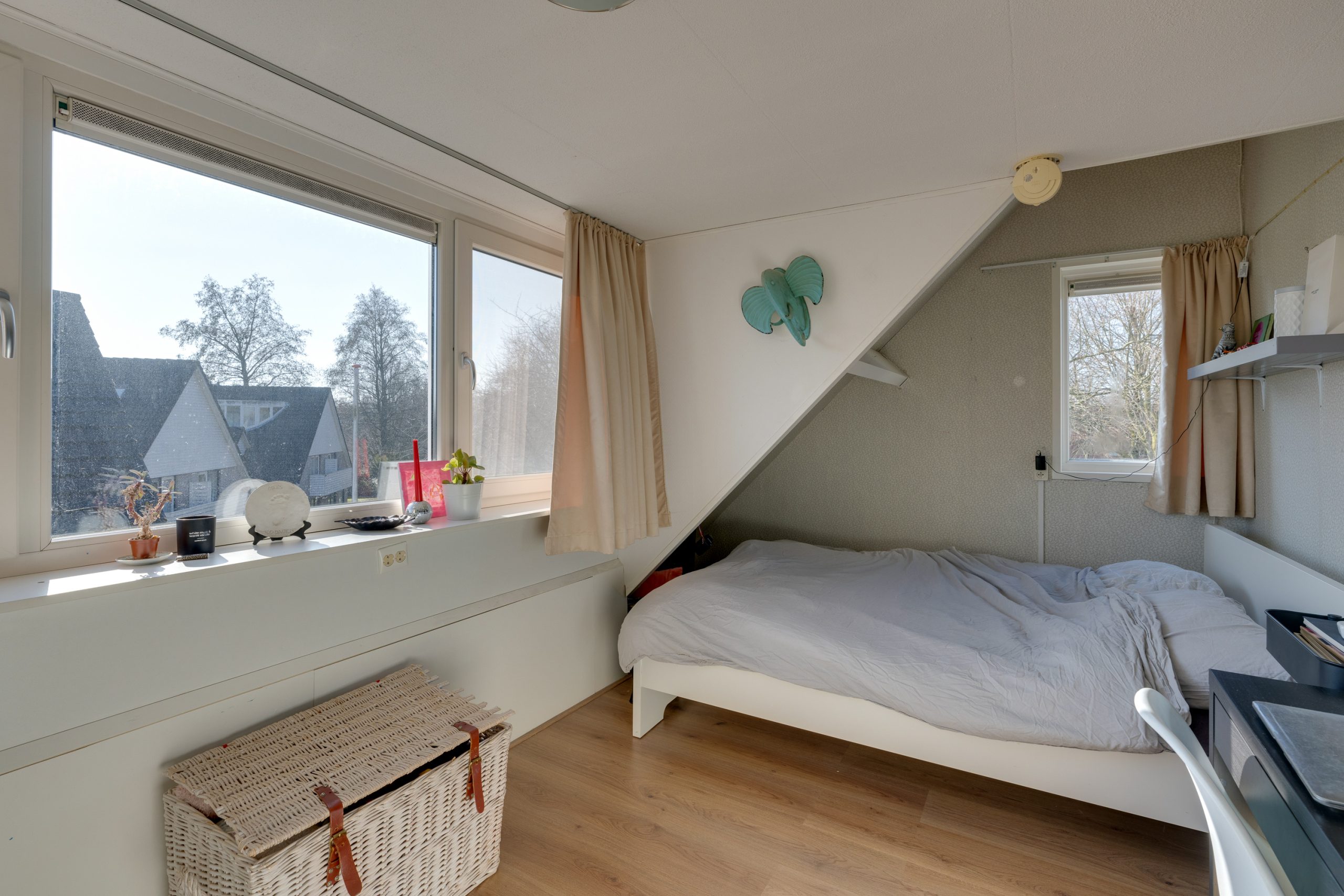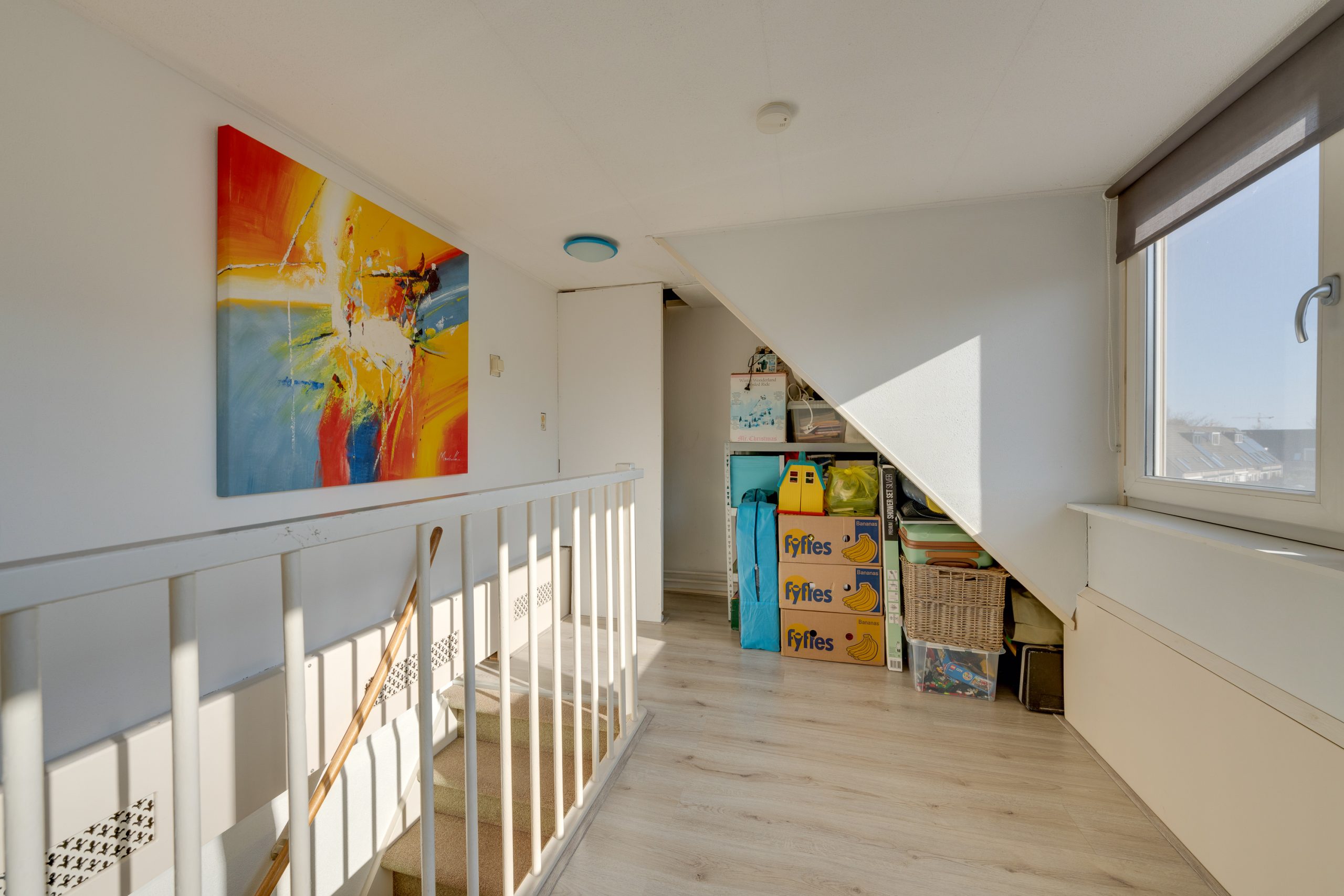 2e verdieping: Overloop met bergruimte achter knieschotten en CV ketel (Intergas uit 2021) en een slaapkamer voorzien van bergruimte achter knieschotten en kunststof dakkapel. De gehele verdieping is voorzien van laminaatvloer.