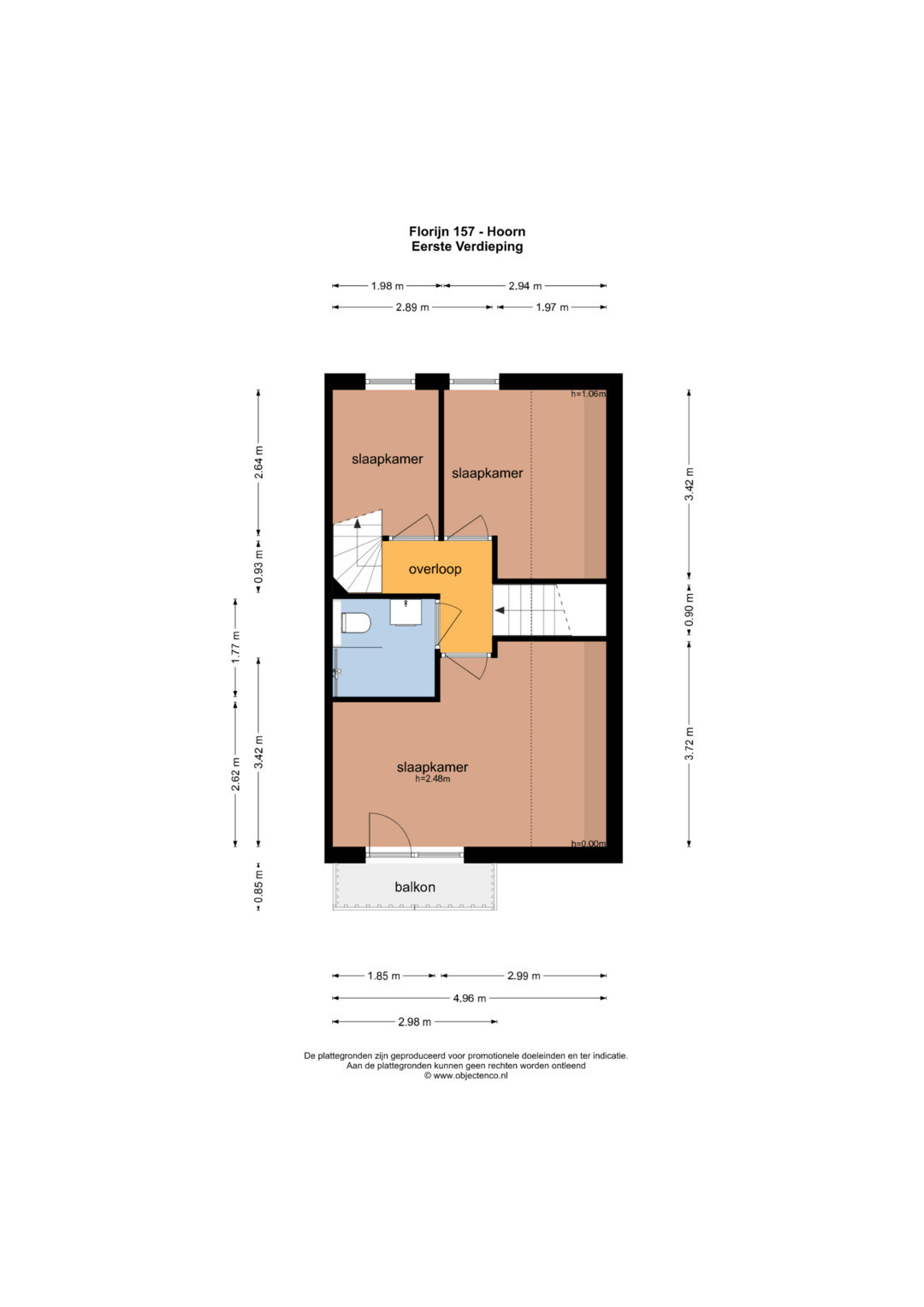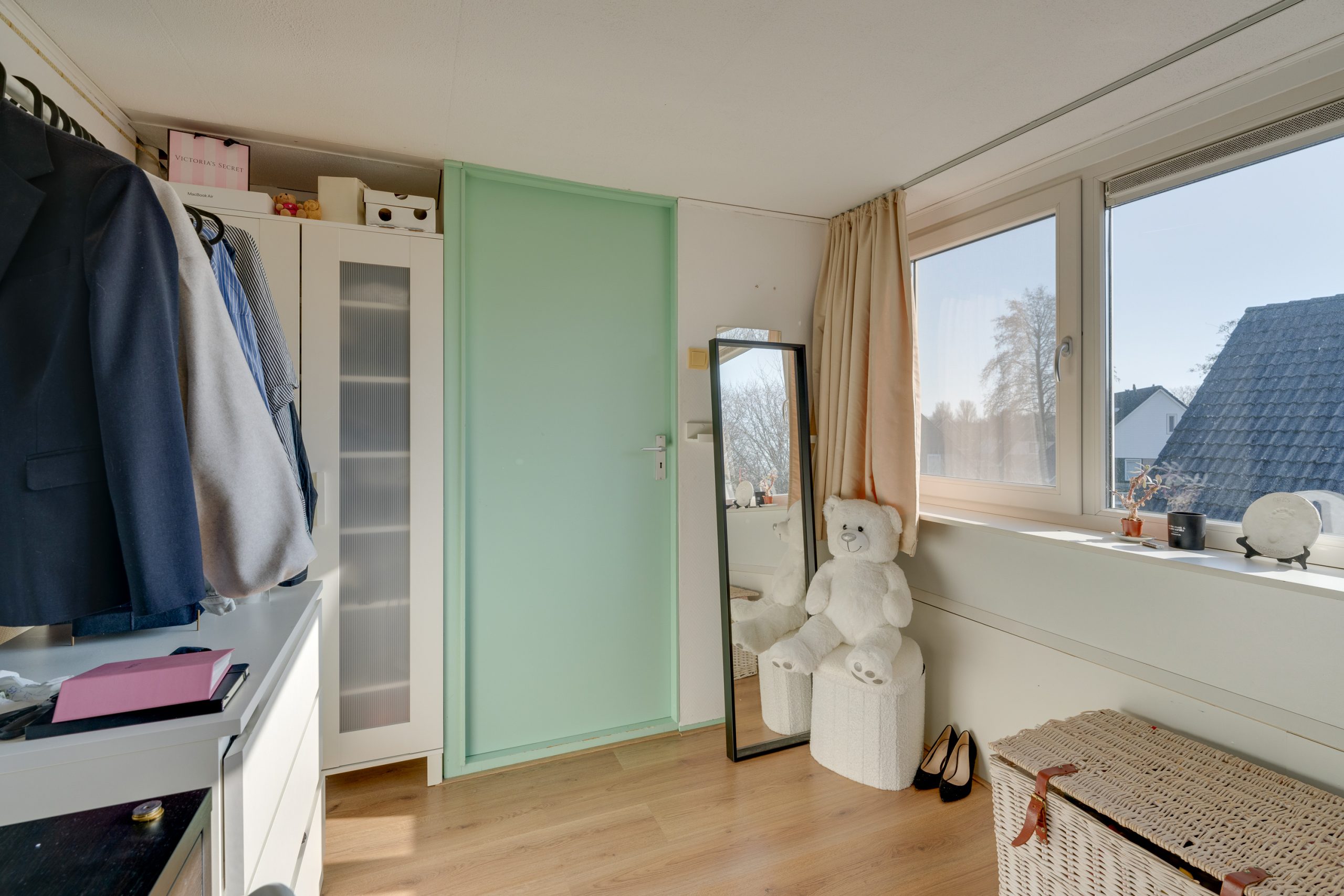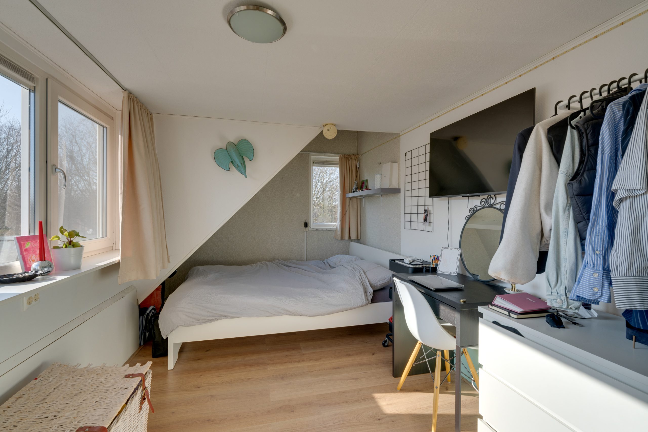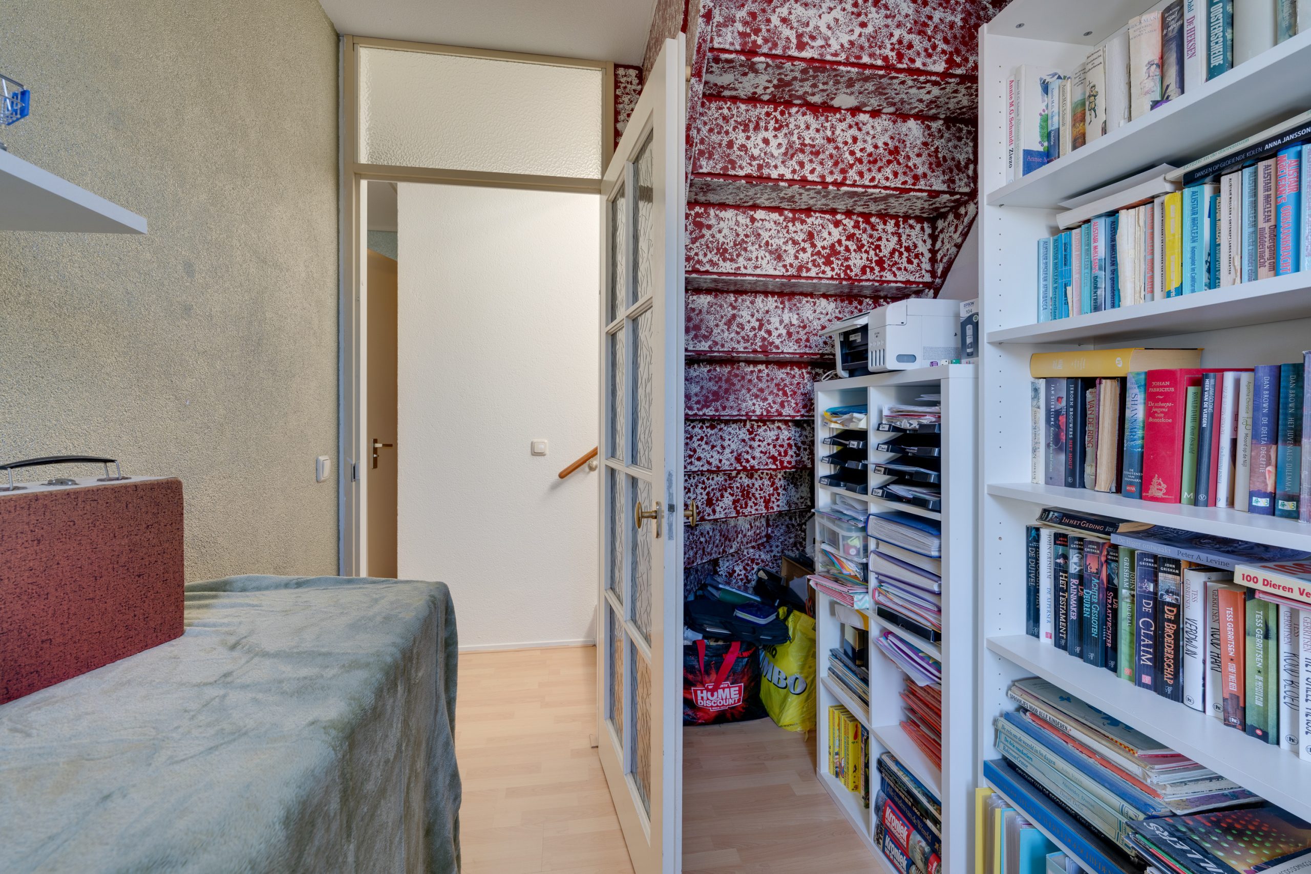 2e verdieping: Overloop met bergruimte achter knieschotten en CV ketel (Intergas uit 2021) en een slaapkamer voorzien van bergruimte achter knieschotten en kunststof dakkapel. De gehele verdieping is voorzien van laminaatvloer.