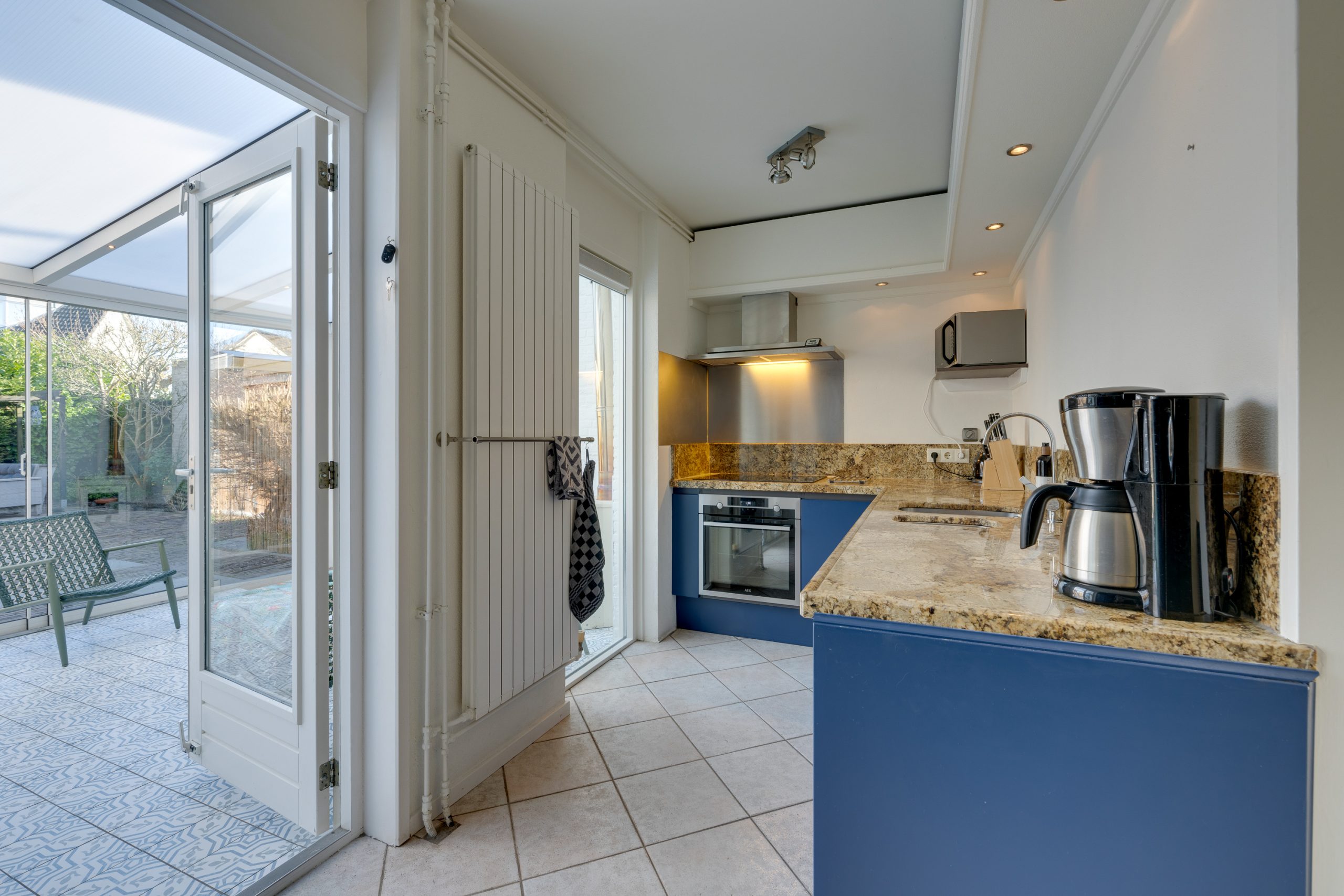In de prachtige serre kun je al vroeg in het jaar al proeven van buiten en genieten van de tuin. En de houtkachel zorgt voor een hele aangename sfeer en warmte. Door de diepe achtertuin is hier altijd een heerlijk plekje in de zon te vinden. Van ’s ochtends vroeg tot ’s avonds heerlijk in het zonnetje tot rust komen van alle hectiek van de dag.