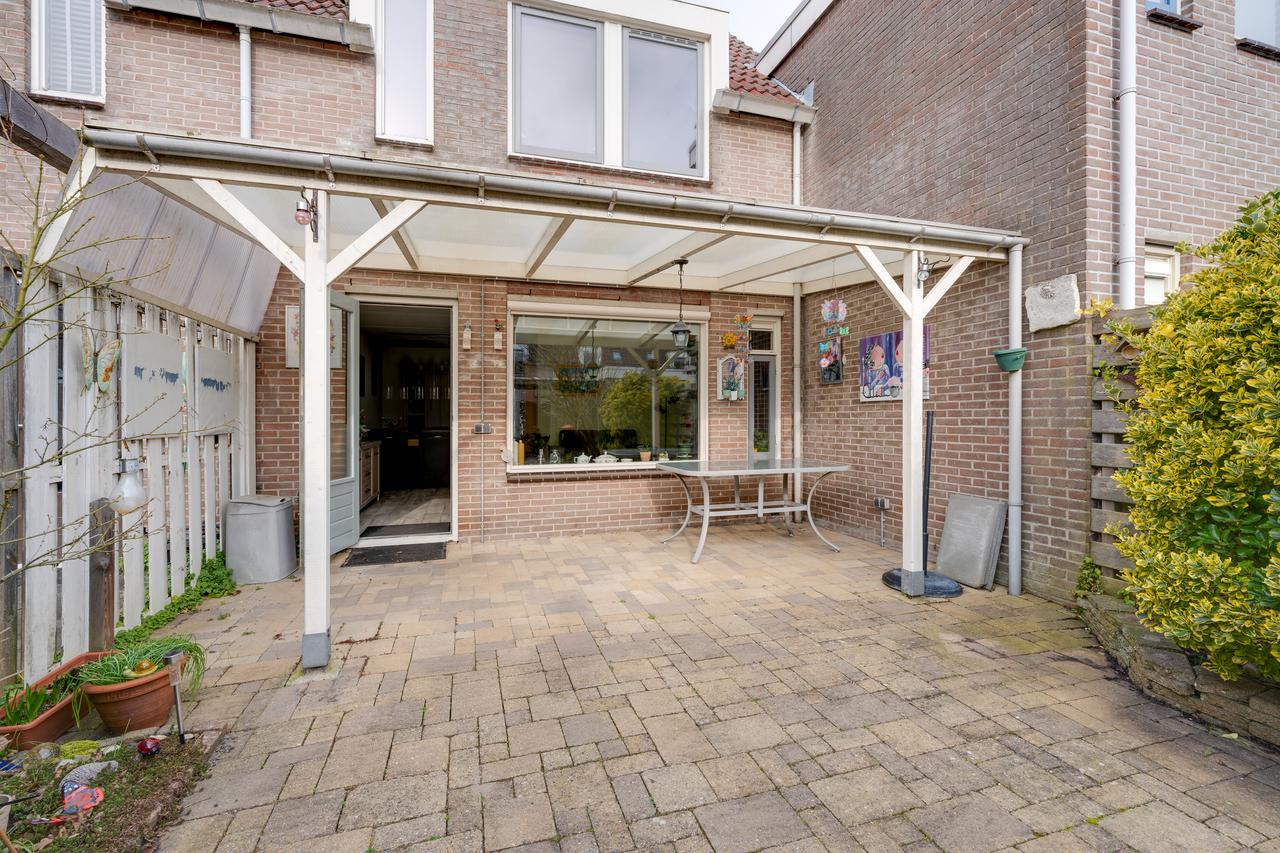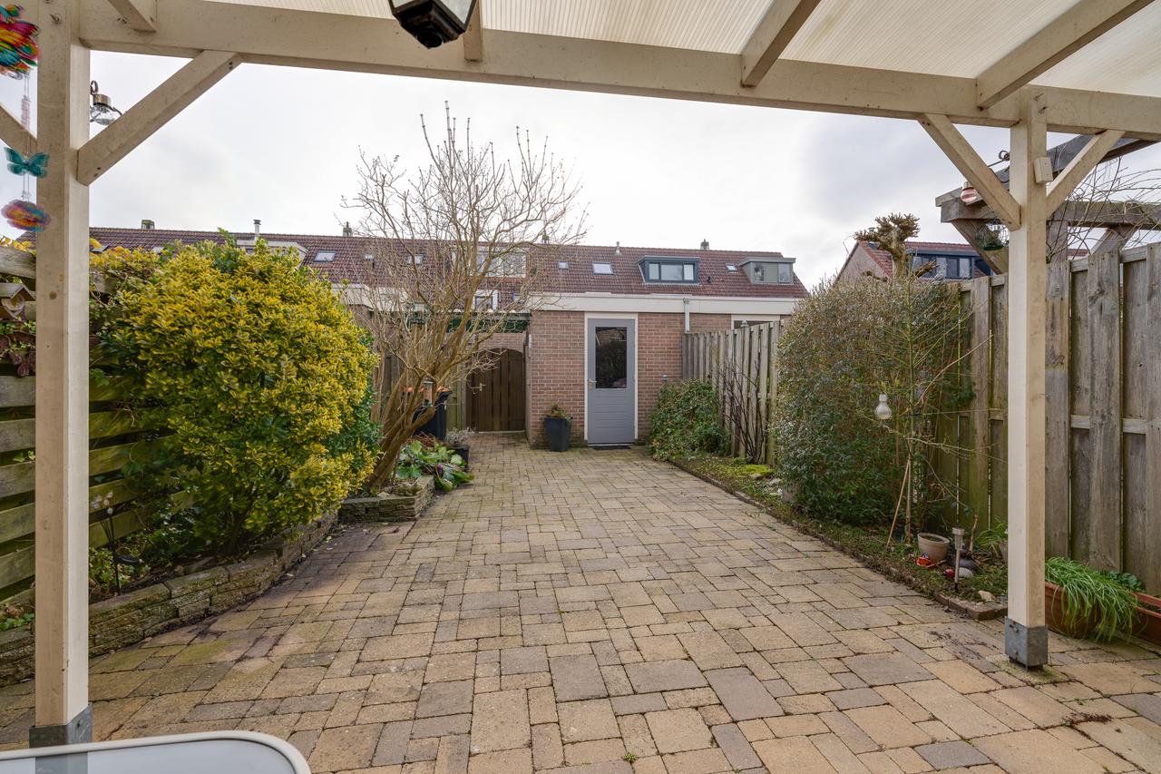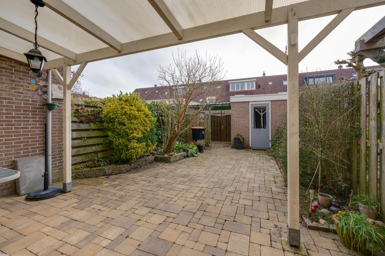 Aan de voorzijde een vrije doorkijk de straat in en voldoende parkeergelegenheid. De diepe achtertuin is gelegen op het zonnige zuidwesten. Hier kun je in alle rust en privacy genieten van het zonnetje en lekker bijkomen van alle hectiek van de dag. Op de mindere dagen kun je alvast plaatsnemen onder de overkapping om toch te genieten van buiten.