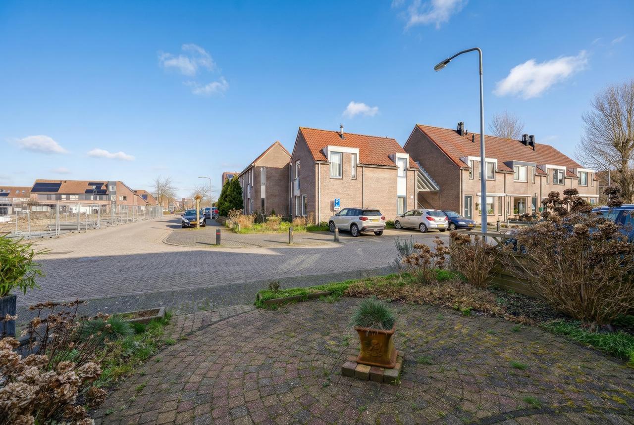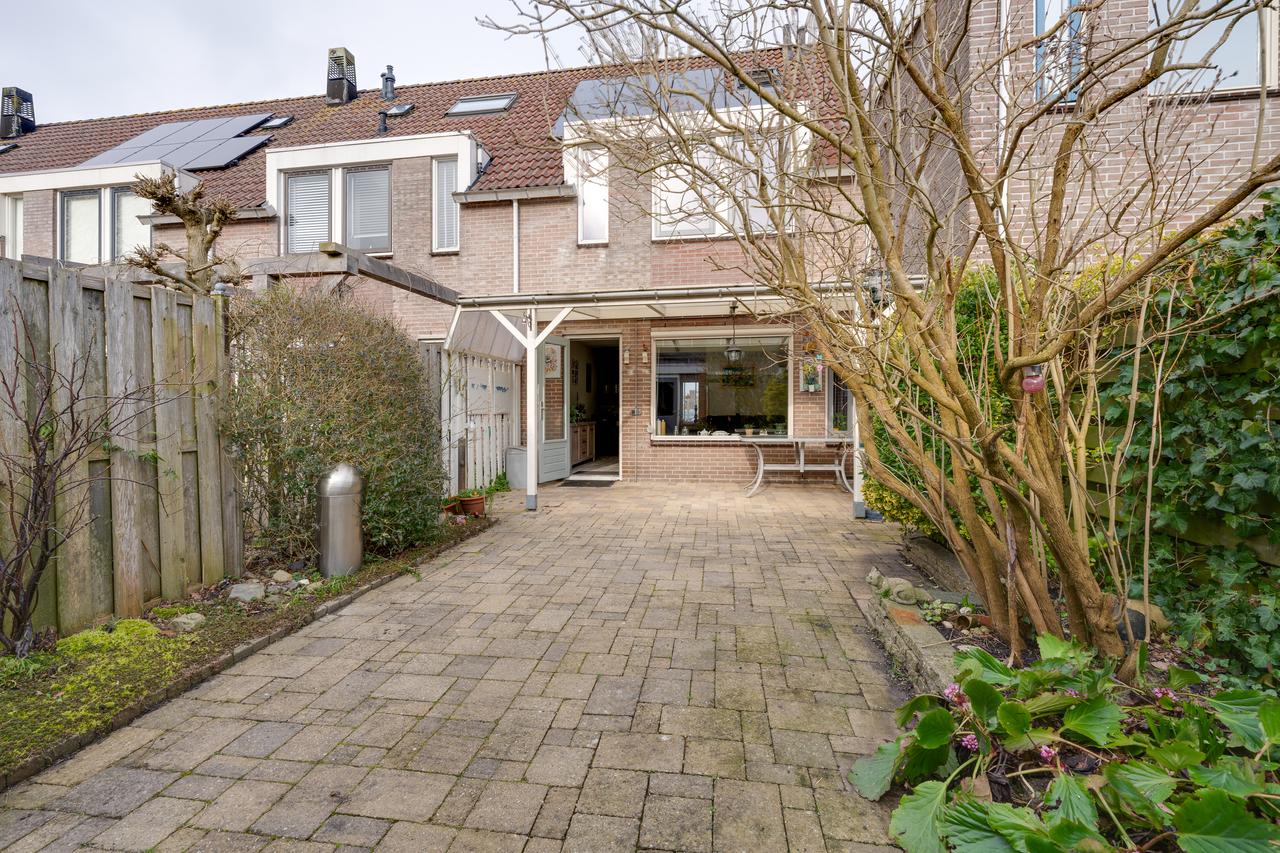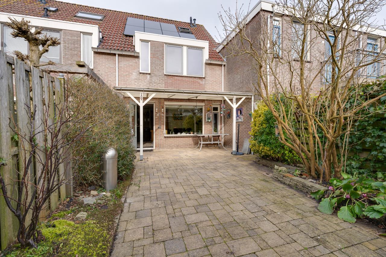 Aan de voorzijde een vrije doorkijk de straat in en voldoende parkeergelegenheid. De diepe achtertuin is gelegen op het zonnige zuidwesten. Hier kun je in alle rust en privacy genieten van het zonnetje en lekker bijkomen van alle hectiek van de dag. Op de mindere dagen kun je alvast plaatsnemen onder de overkapping om toch te genieten van buiten.