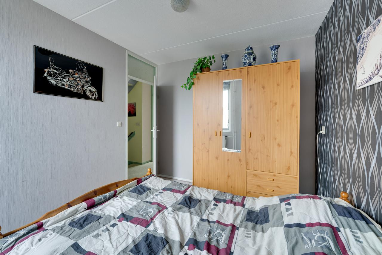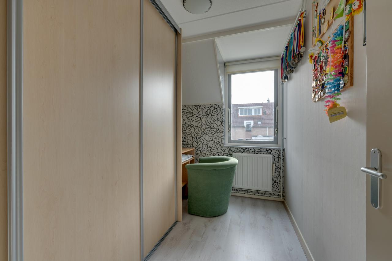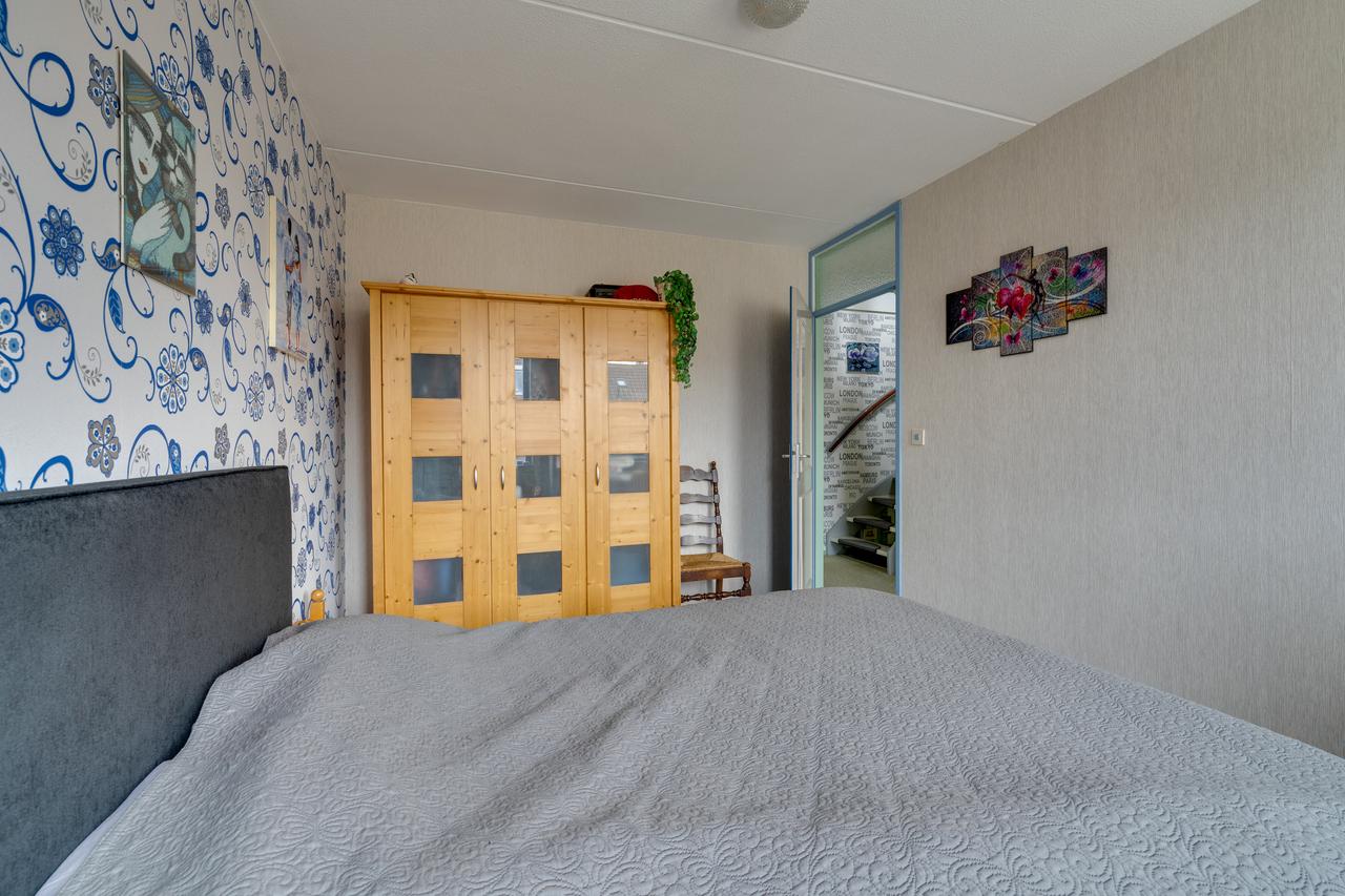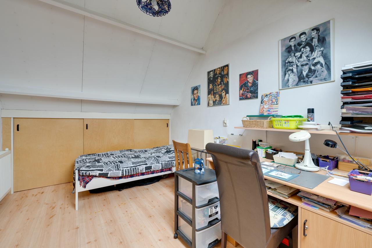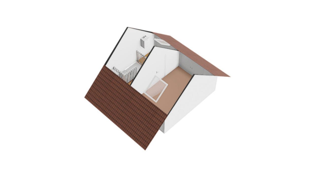 2e verdieping: Overloop voorzien van bergruimte in de schuinte, wasmachine aansluiting, omvormer, ventilatieunit en CV ketel (Intergas uit 2017) en een slaapkamer voorzien van bergruimte in de schuinte.