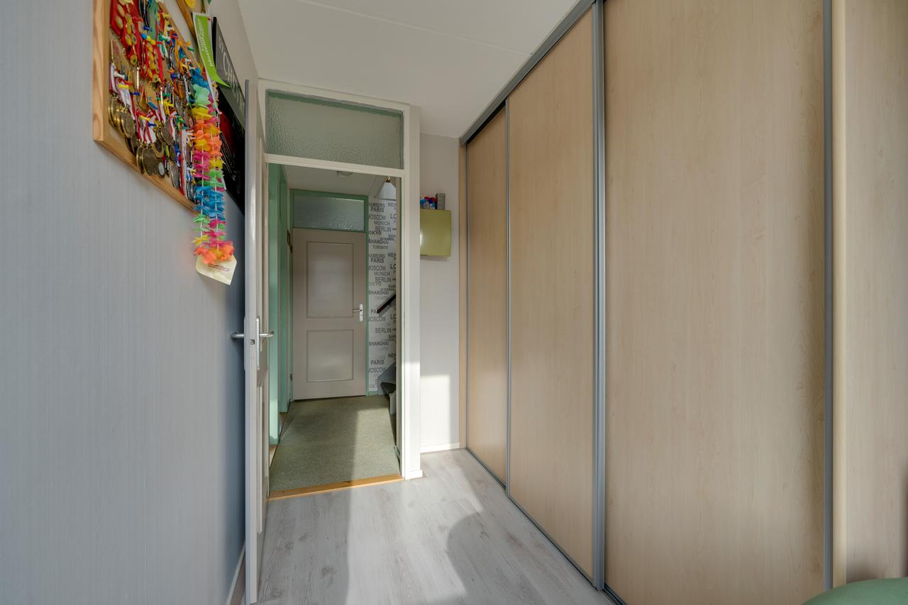 1e verdieping: Overloop met vaste trap naar 2e verdieping, nette betegelde badkamer voorzien van badmeubel, wandcloset en douchecabine, voorslaapkamer, achterslaapkamer voorzien van schuifkastenwand en dakkapel en een tweede achterslaapkamer voorzien van dakkapel.