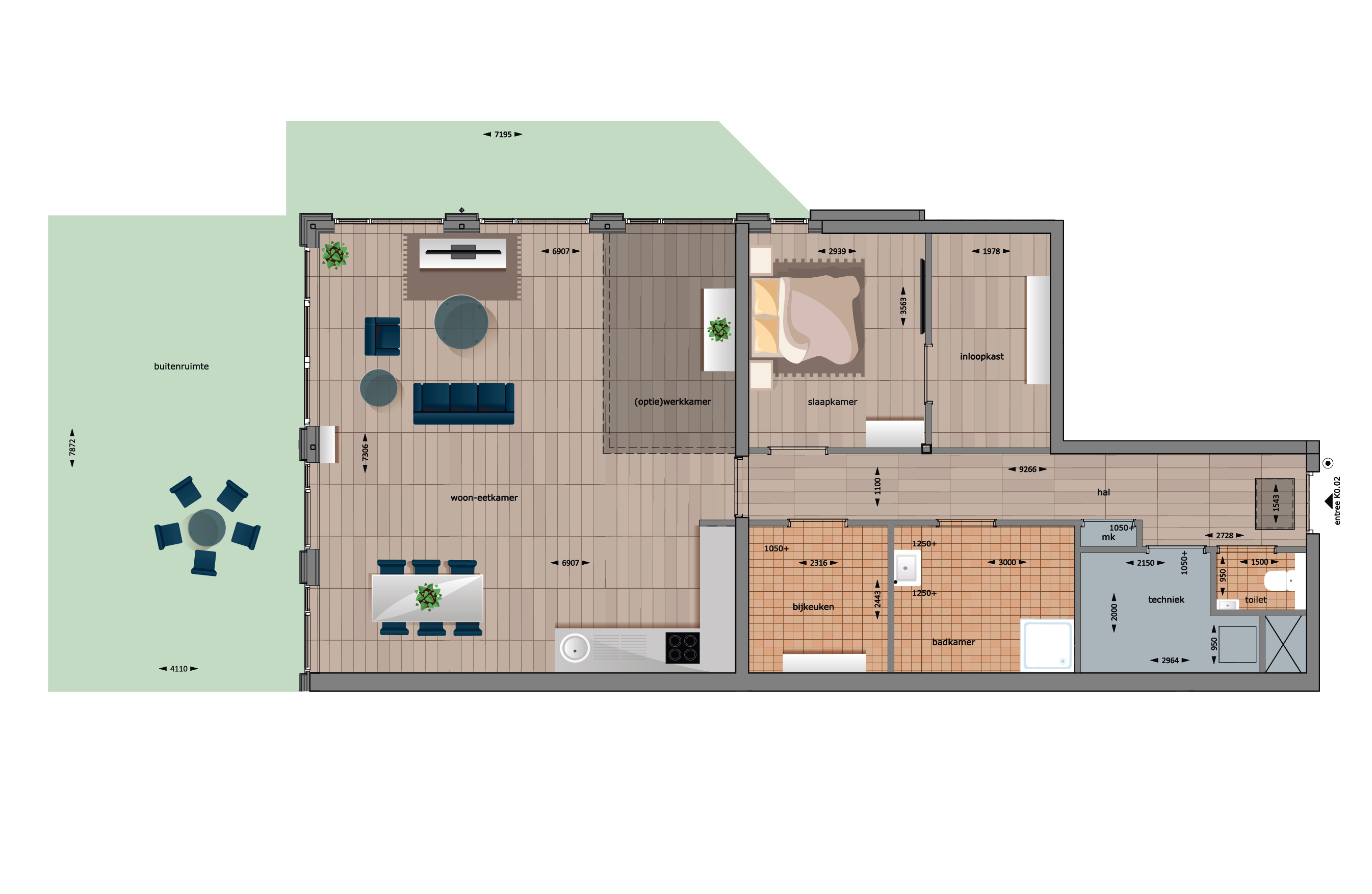 Het appartement is praktisch ingedeeld en biedt een lichte woonkamer met open keuken en toegang tot een fijne buitenruimte. De afwerking is modern en verzorgd. De ruime slaapkamer(s) zijn flexibel in te delen en de badkamer is efficiënt ingericht. Daarnaast beschikt ieder appartement over een eigen berging en vaste parkeerplaats.