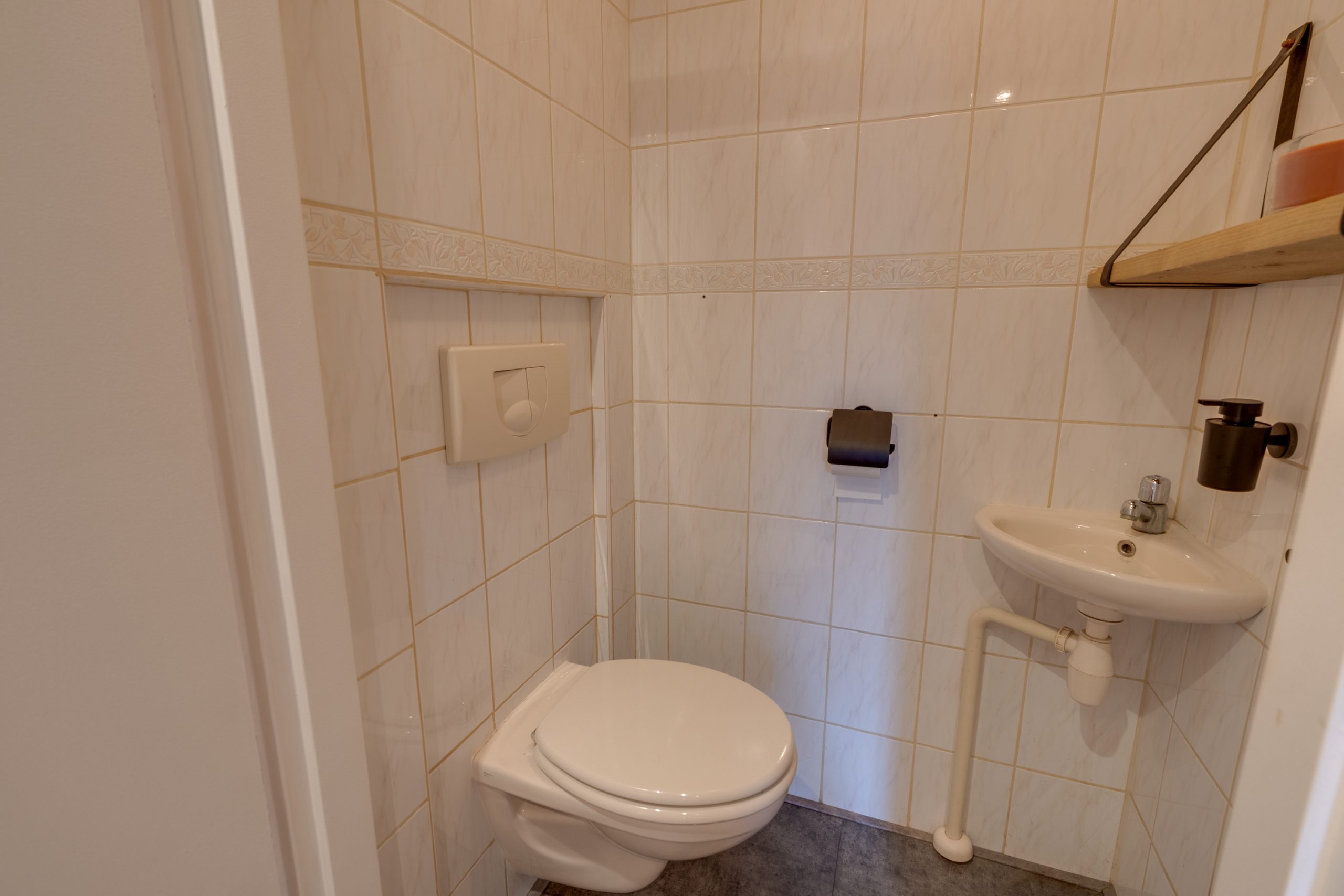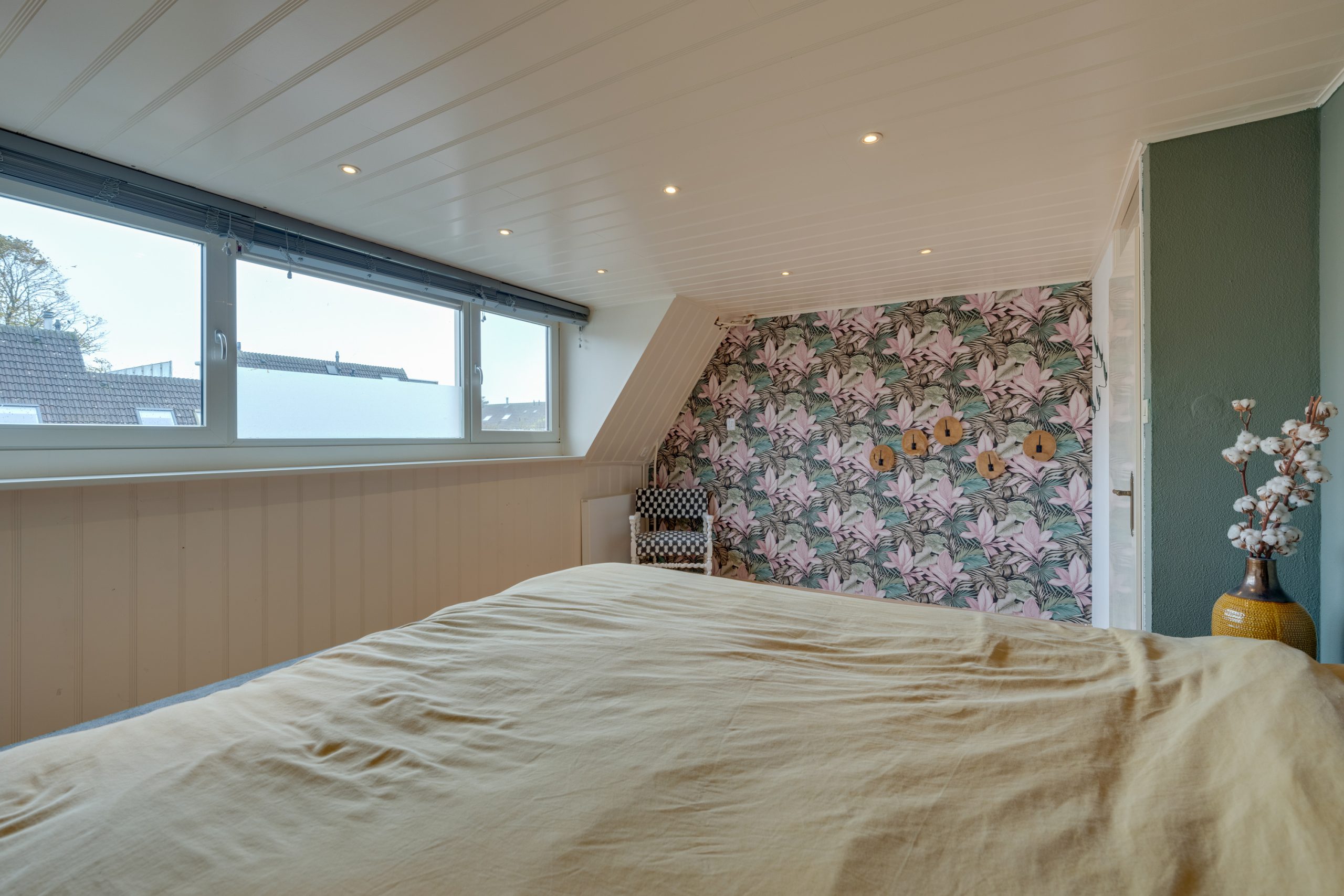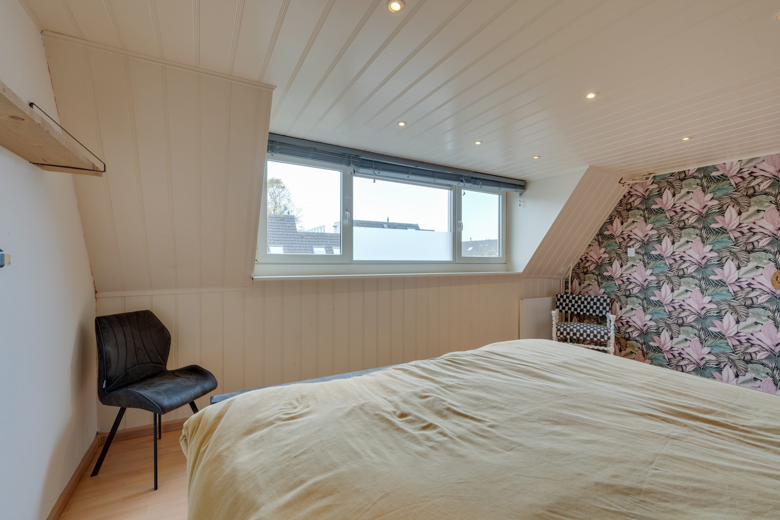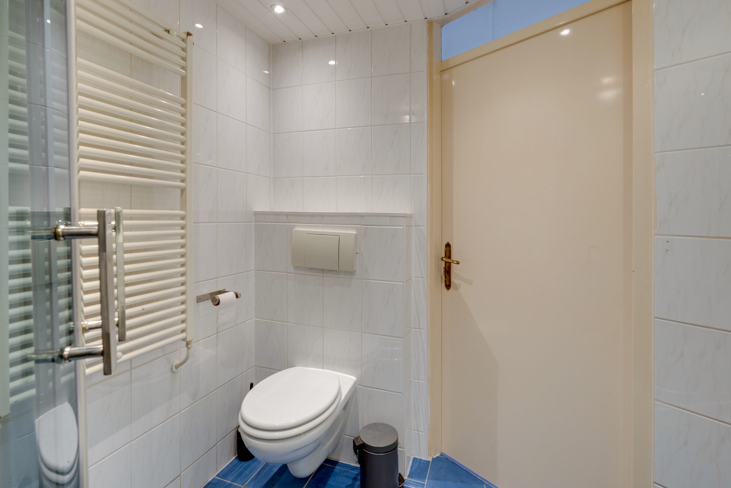 1e verdieping: Overloop met inbouwkast en gesloten trapopgang naar 2e verdieping, voorslaapkamer voorzien van deur naar het balkon, tweede voorslaapkamer, betegelde badkamer voorzien van badmeubel, wandcloset en douchecabine en een achterslaapkamer voorzien van kunststof dakkapel. De gehele verdieping is voorzien van laminaatvloer.