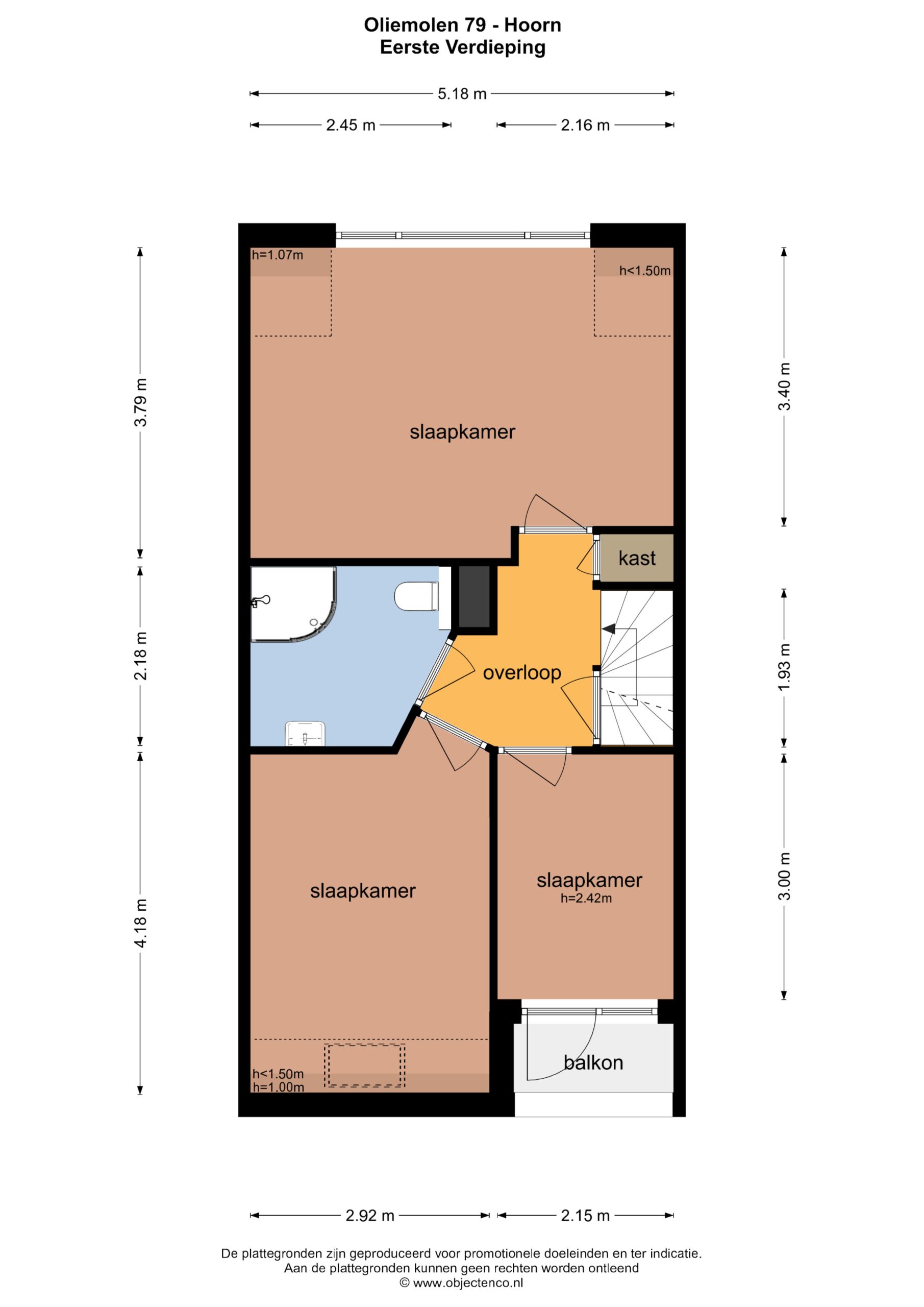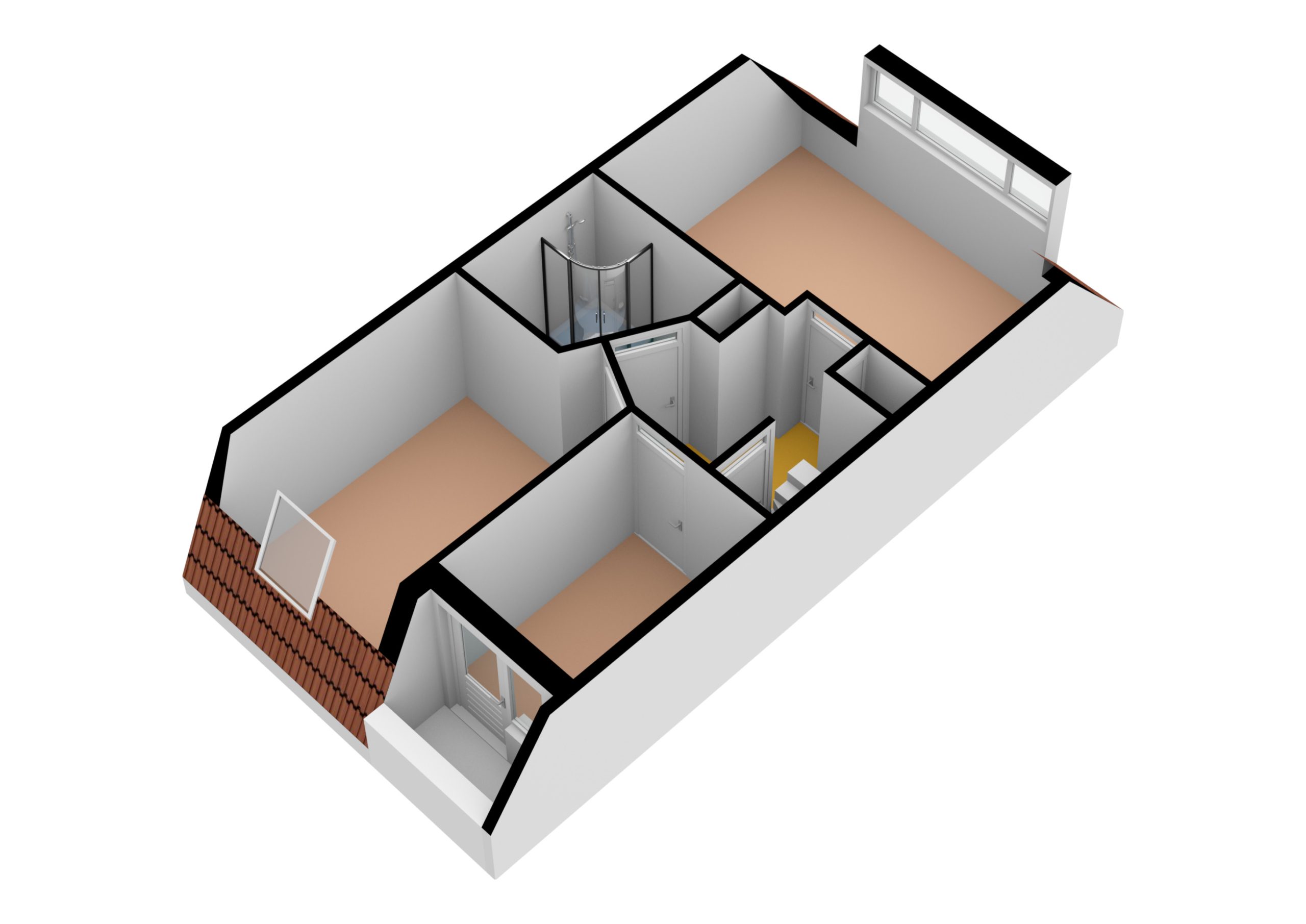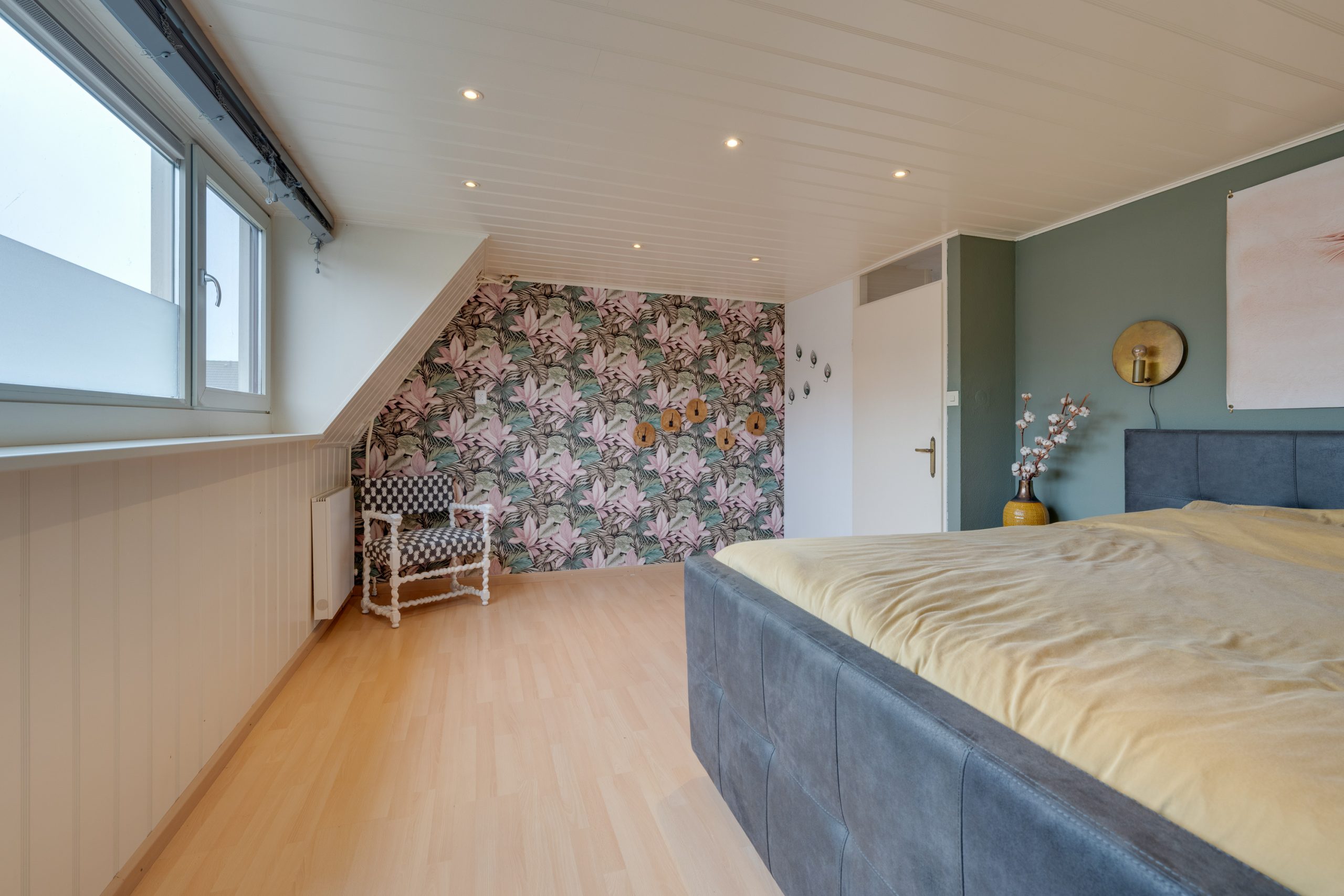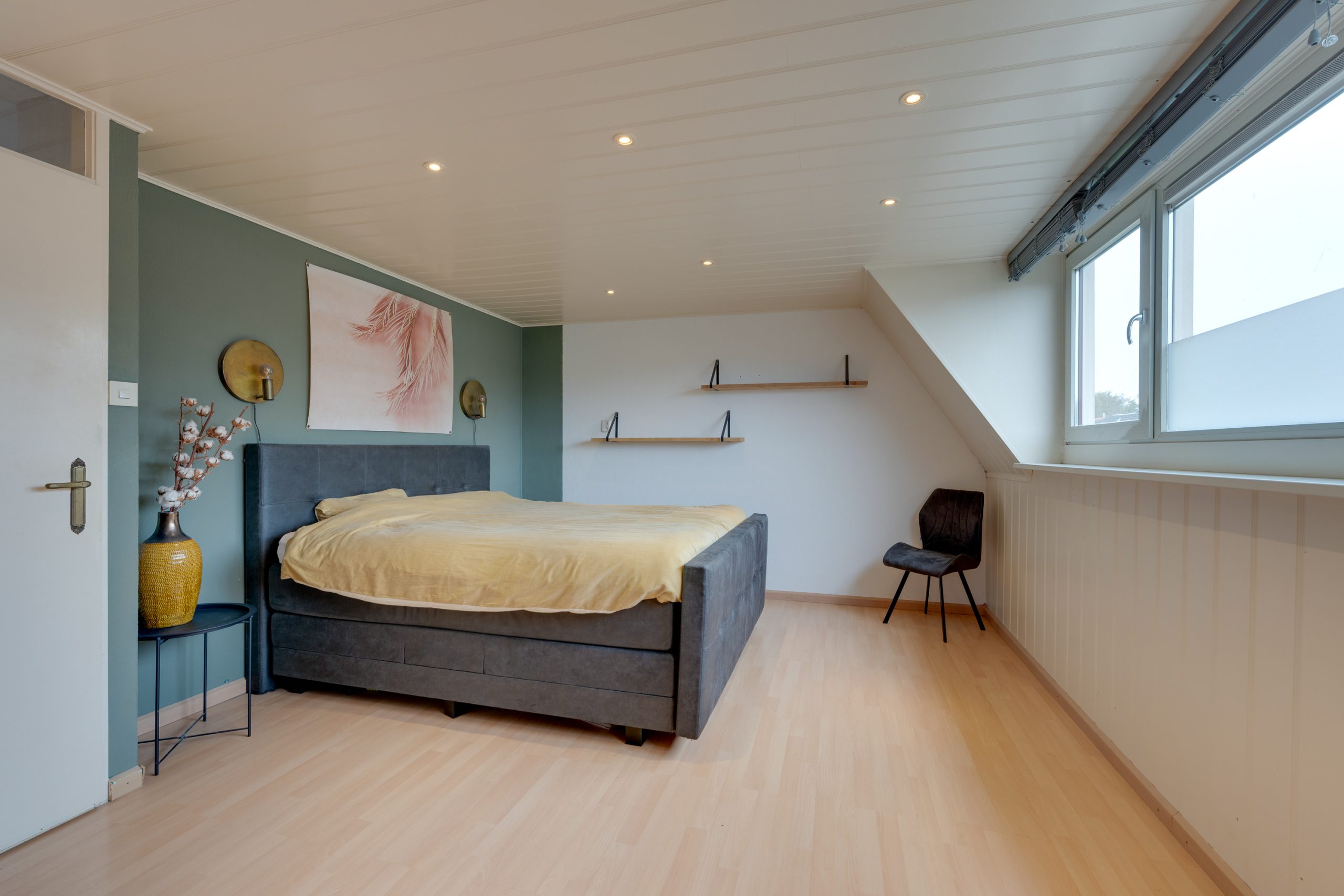 1e verdieping: Overloop met inbouwkast en gesloten trapopgang naar 2e verdieping, voorslaapkamer voorzien van deur naar het balkon, tweede voorslaapkamer, betegelde badkamer voorzien van badmeubel, wandcloset en douchecabine en een achterslaapkamer voorzien van kunststof dakkapel. De gehele verdieping is voorzien van laminaatvloer.