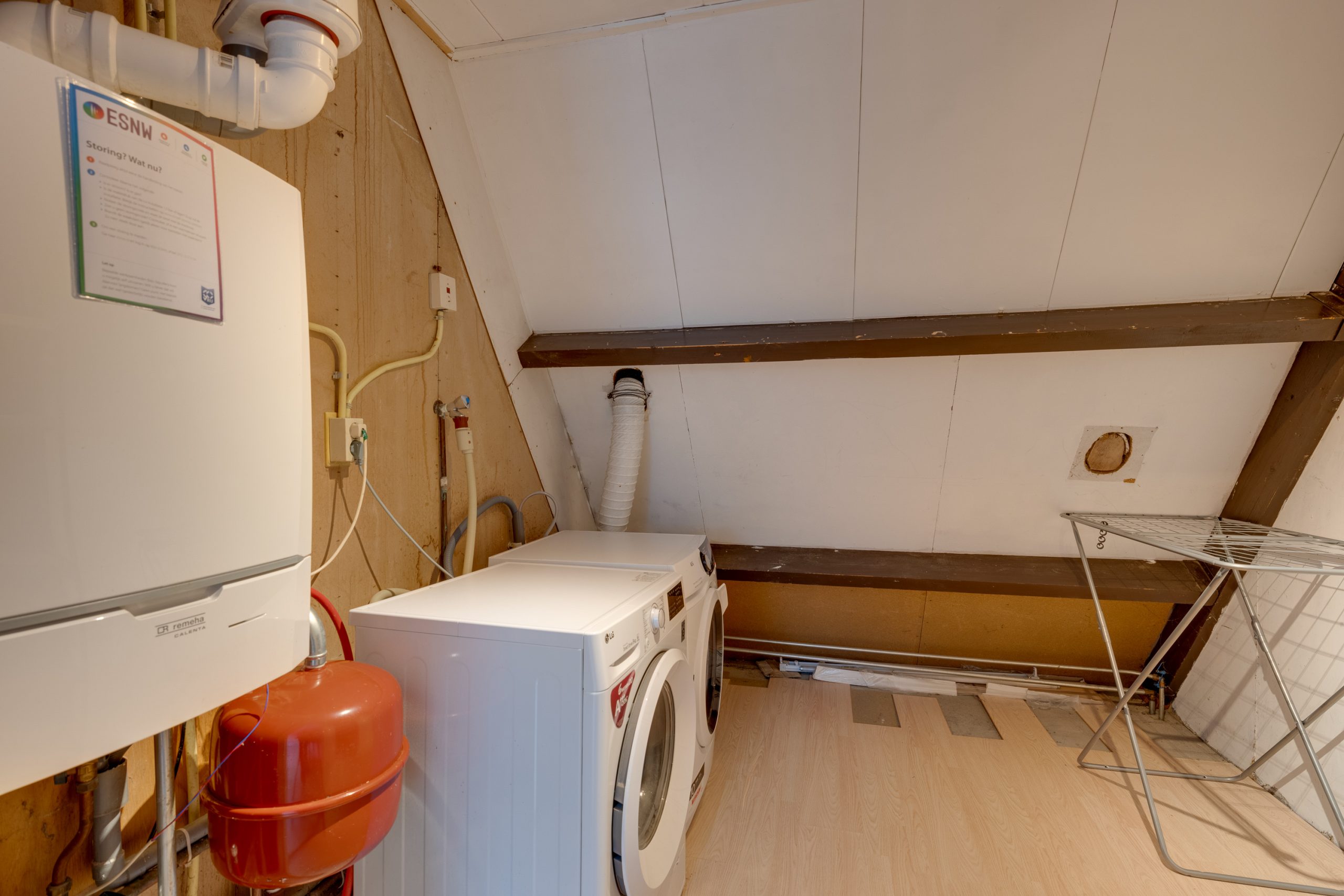 2e verdieping: Overloop met deur naar het balkon, wasruimte voorzien van wasmachine aansluiting, wasdroger aansluiting en CV ketel (Remeha uit 2017) en nog een vierde slaapkamer. De gehele verdieping is voorzien van laminaatvloer.