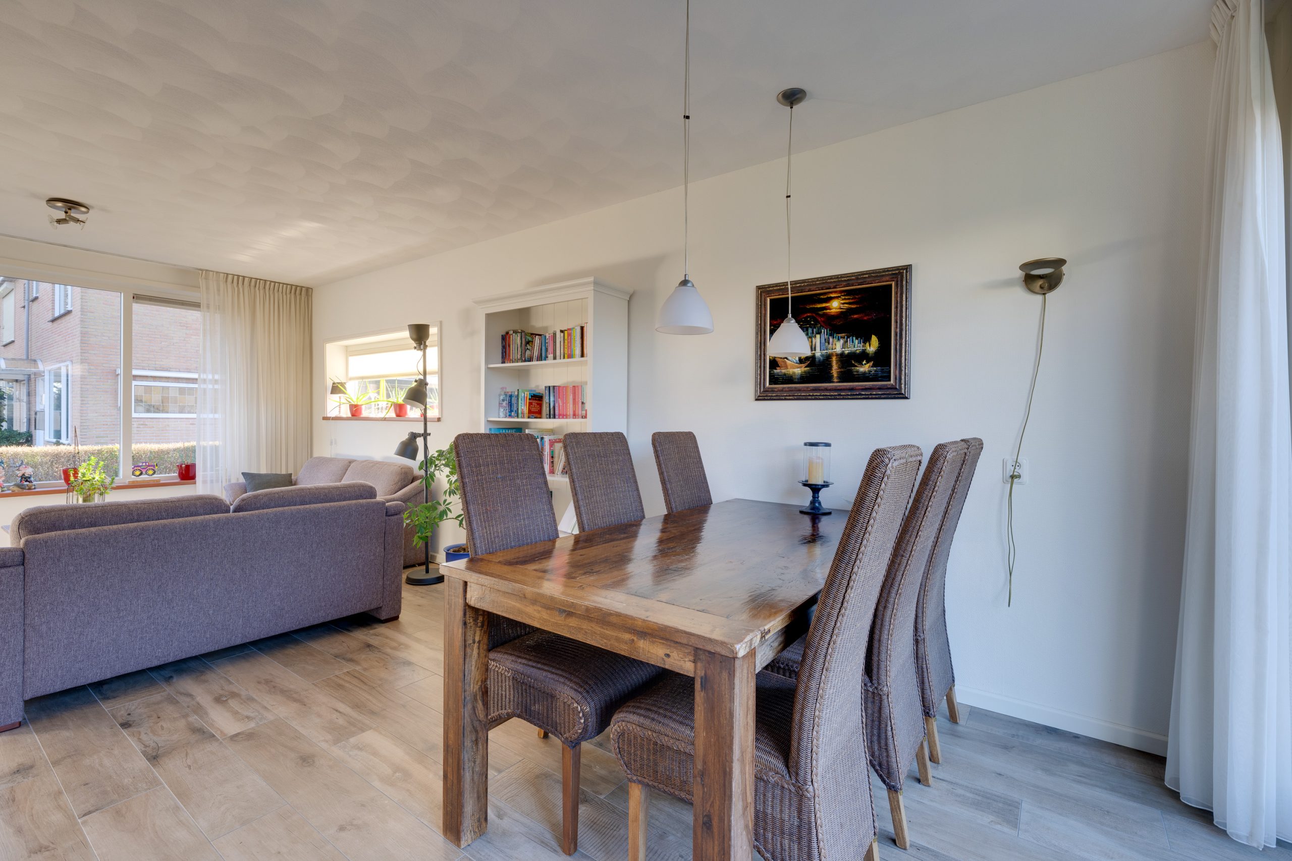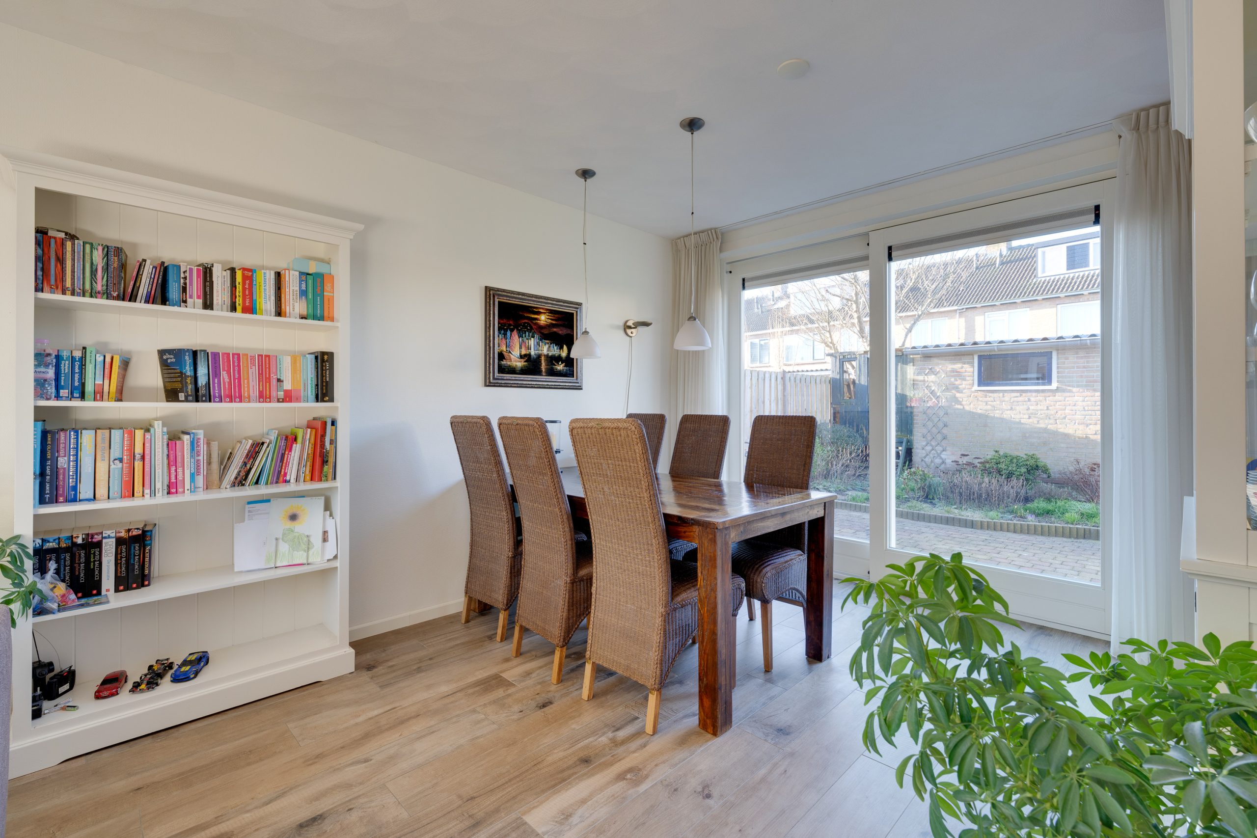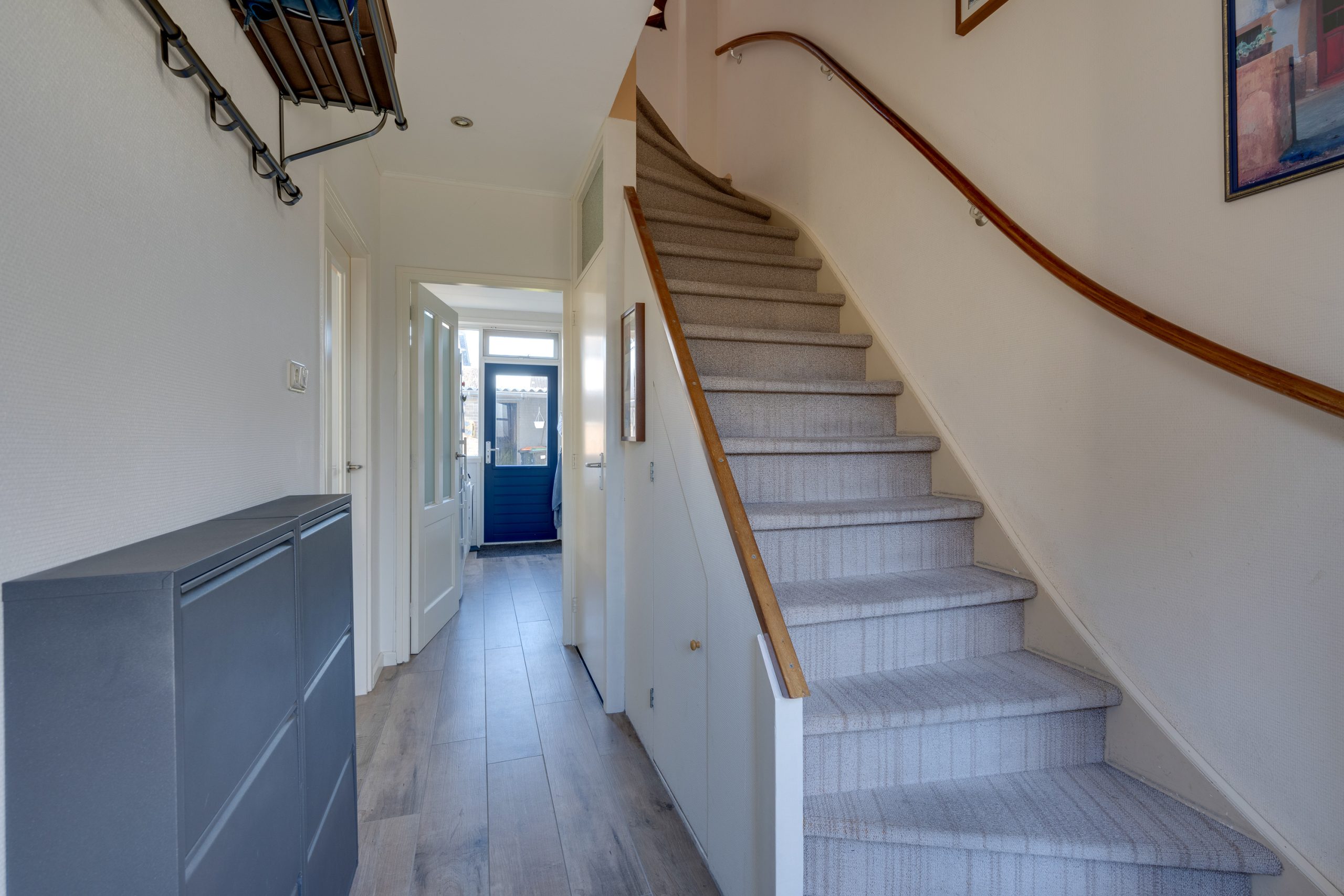 Begane grond: entree, trap naar de 1e verdieping met trapkast, toilet, een doorzonwoonkamer met een fraai vloer voorzien van vloerverwarming en een schuifpui naar de achtertuin, een dichte keuken met een deur naar de tuin.