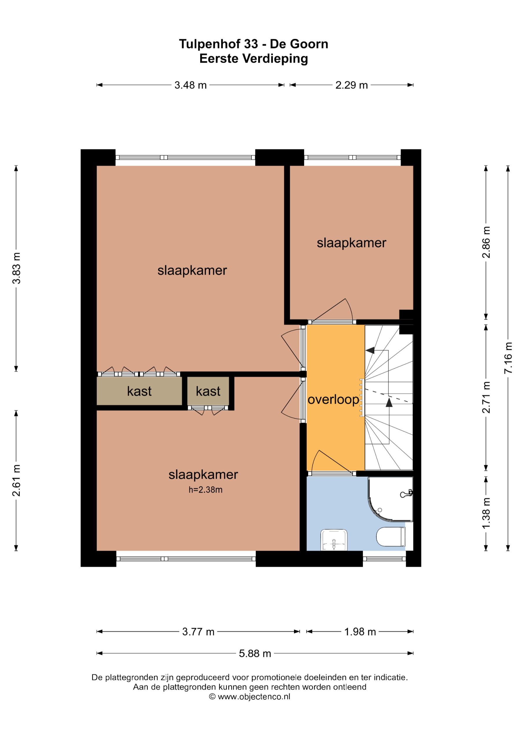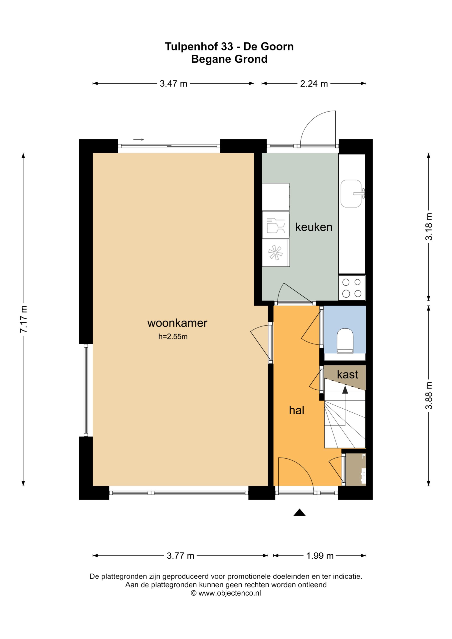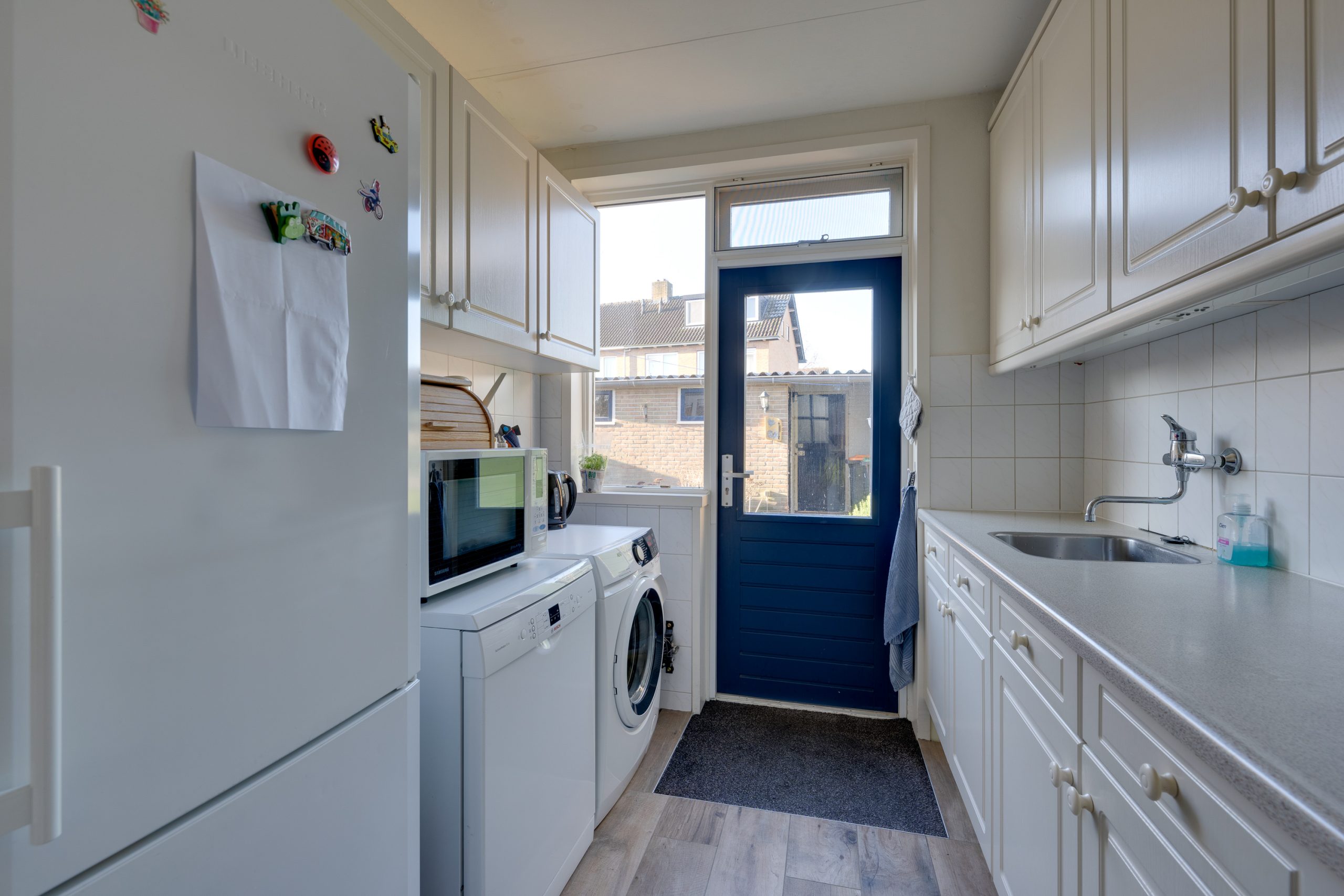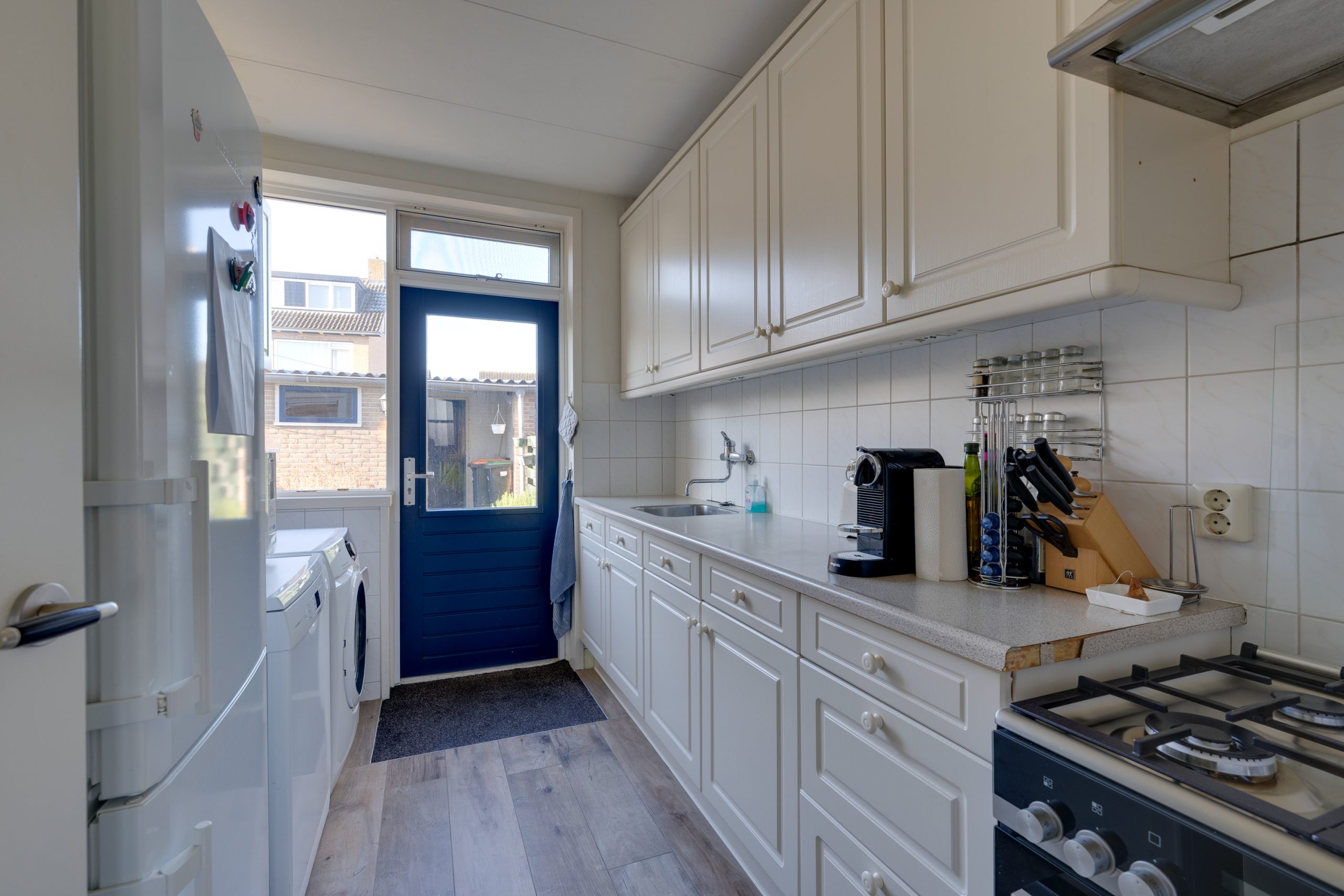 Begane grond: entree, trap naar de 1e verdieping met trapkast, toilet, een doorzonwoonkamer met een fraai vloer voorzien van vloerverwarming en een schuifpui naar de achtertuin, een dichte keuken met een deur naar de tuin.