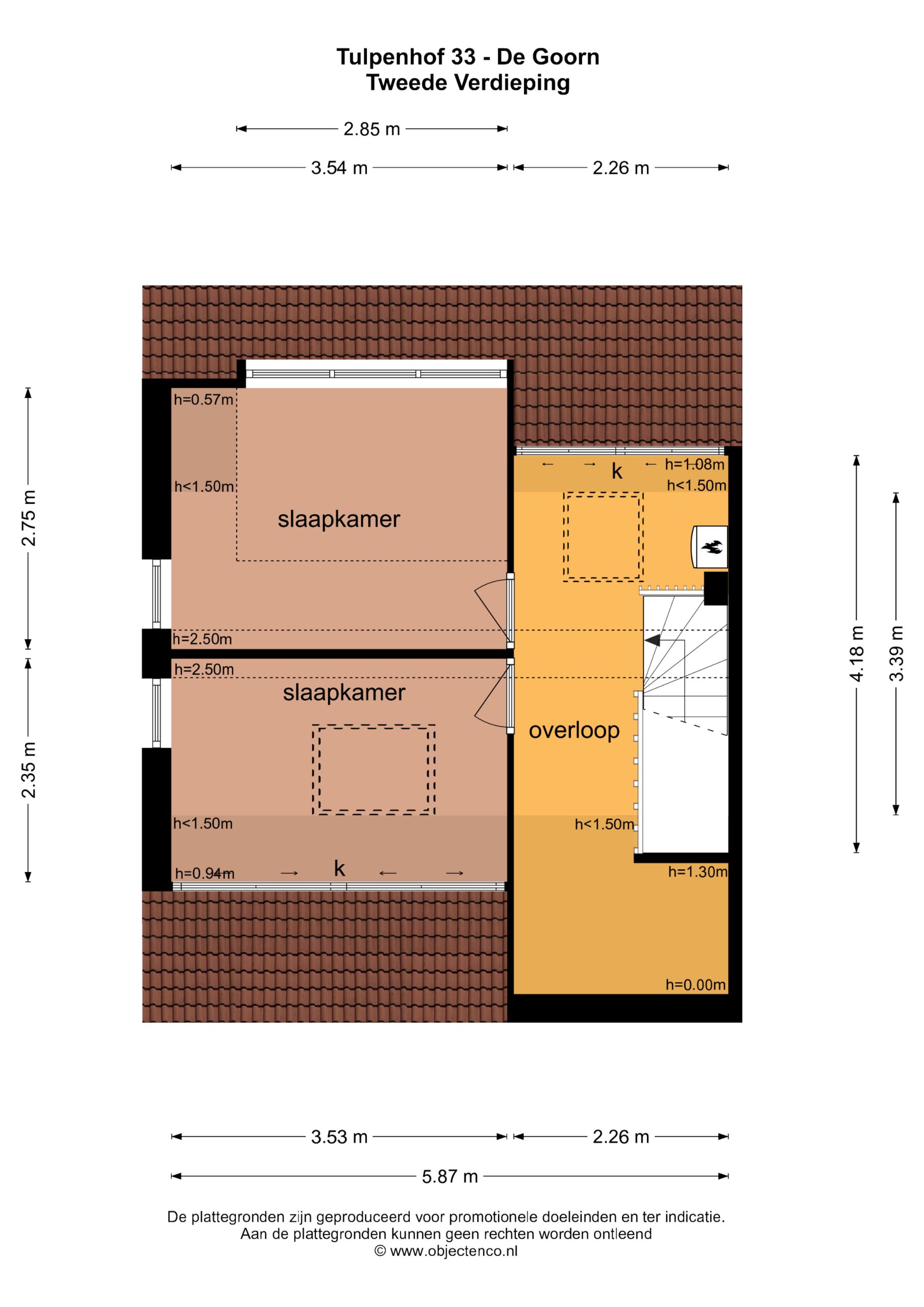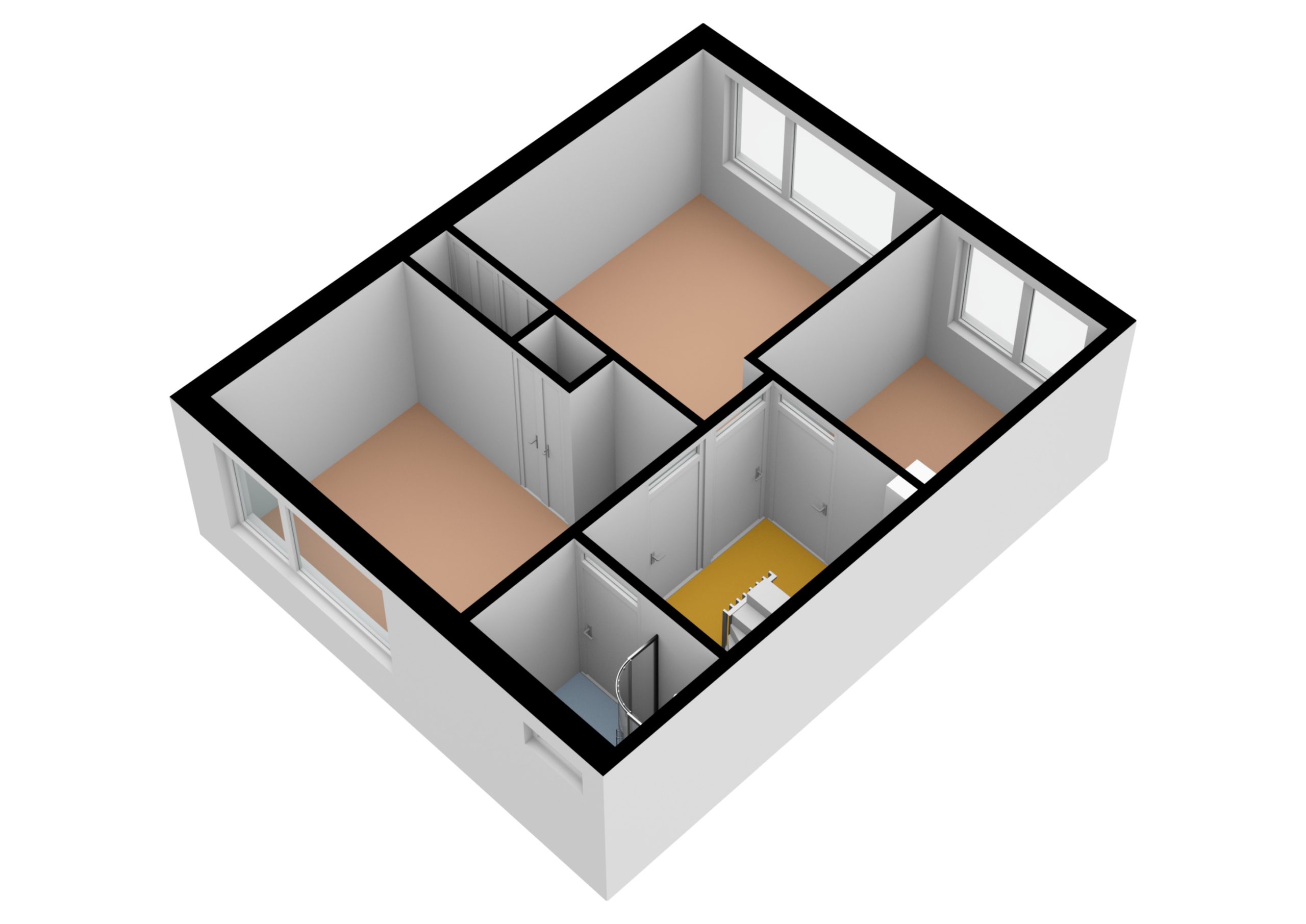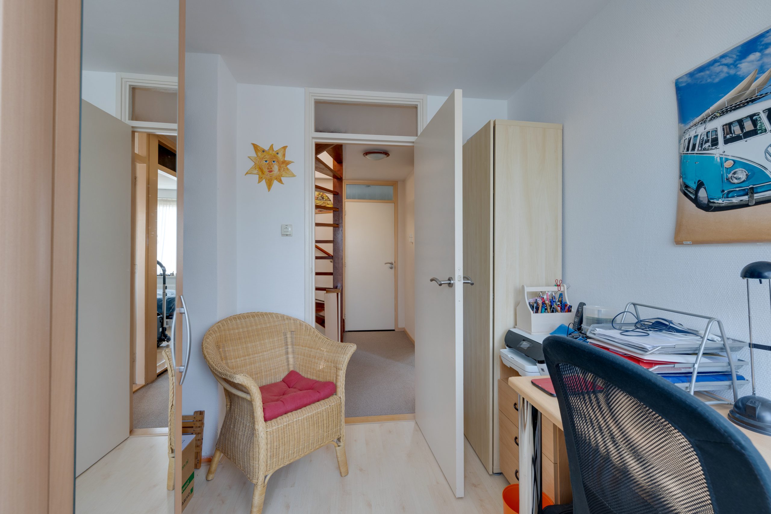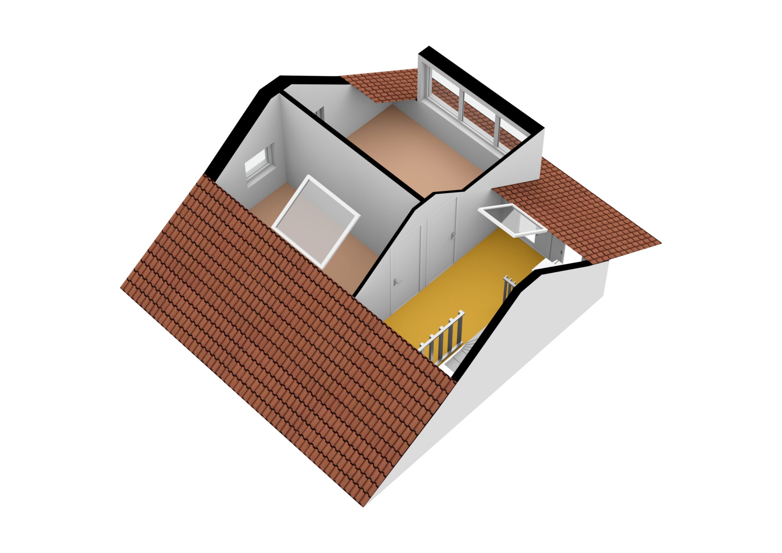 2e verdieping: voorzolder met CV opstelling (Intergas 2020), voorslaapkamer, achterslaapkamer, bergruimte achter de knieschotten.
