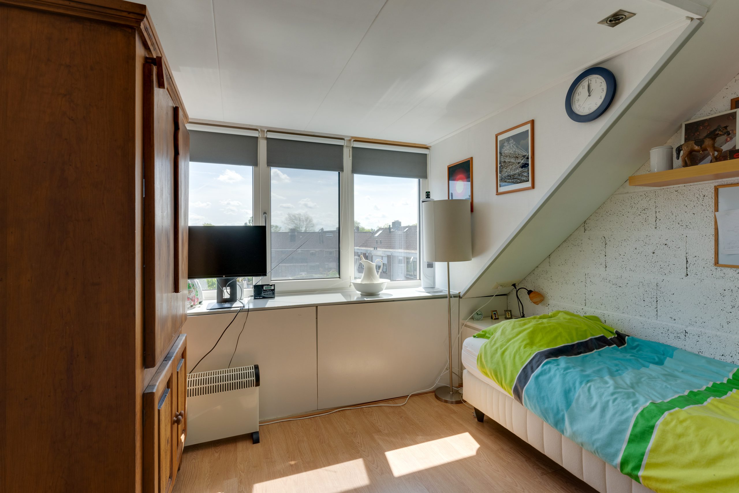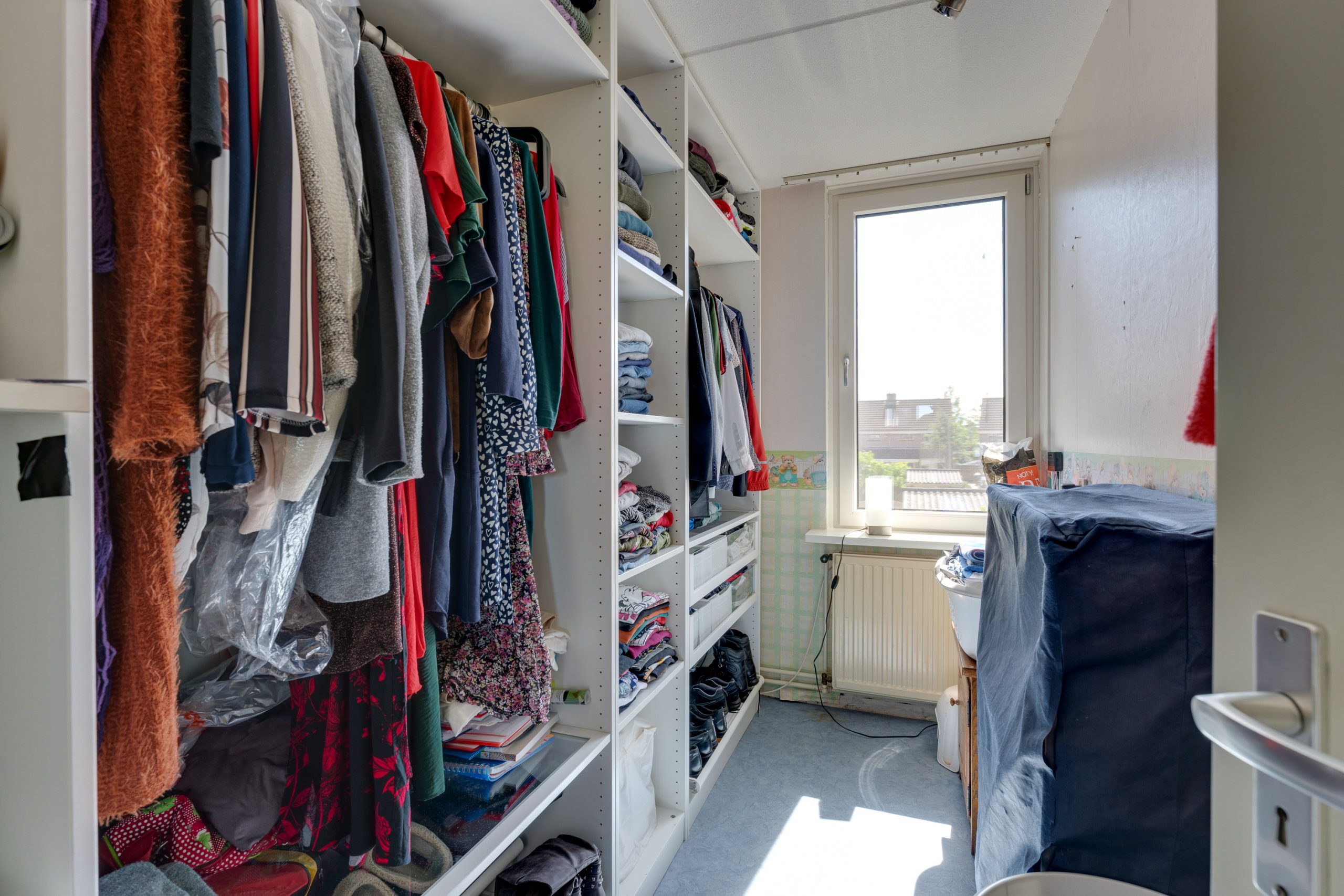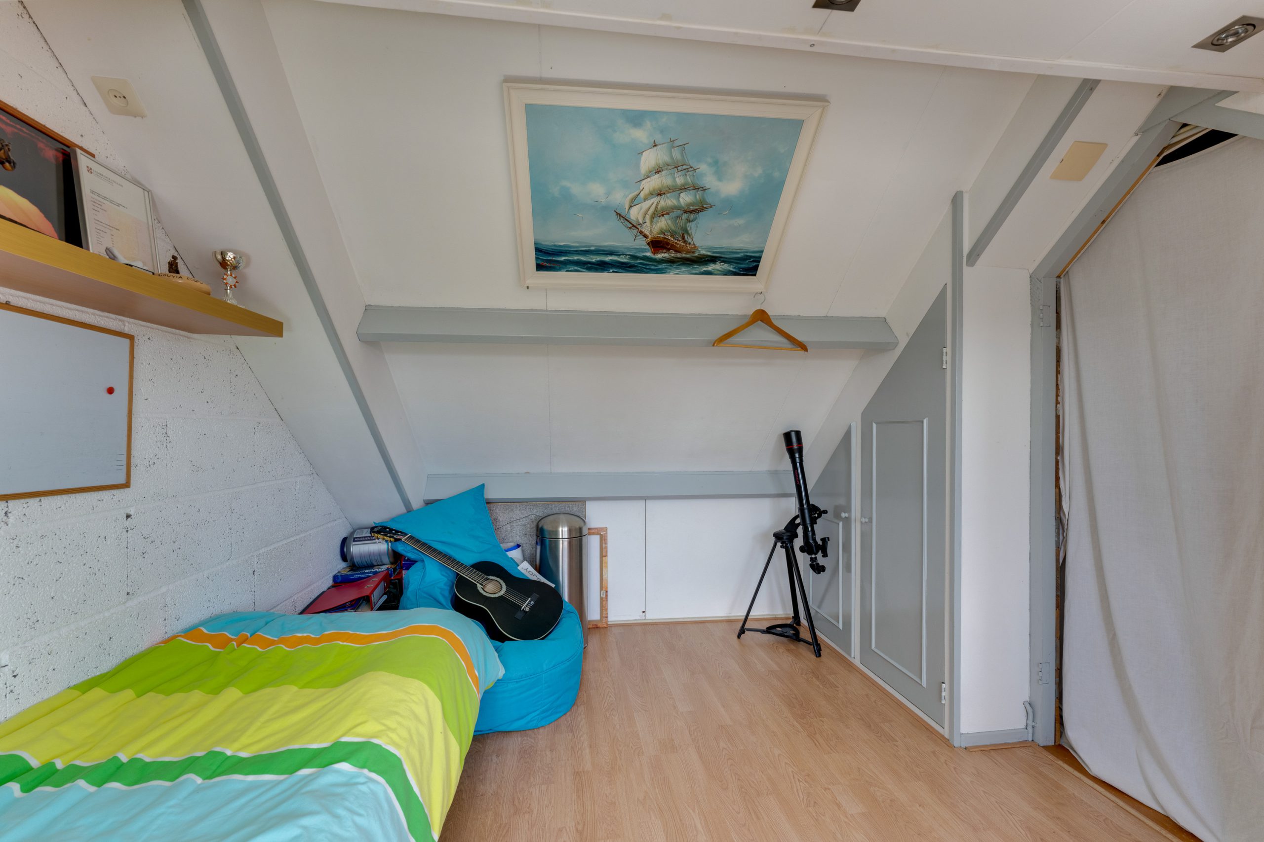 2e verdieping: Overloop met CV ketel (Nefit met bouwjaar 2016), mechanische ventilatieunit en kunststof dakkapel en een slaapkamer voorzien van kunststof dakkapel, bergruimte in schuinte achter knieschotten en een laminaatvloer.