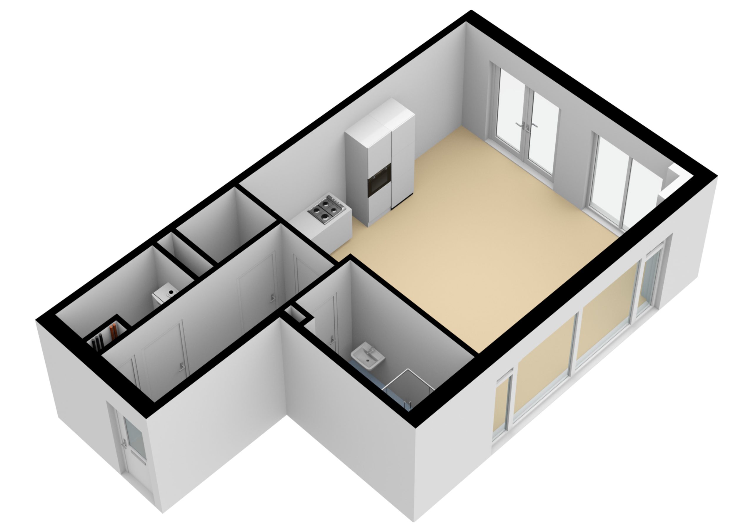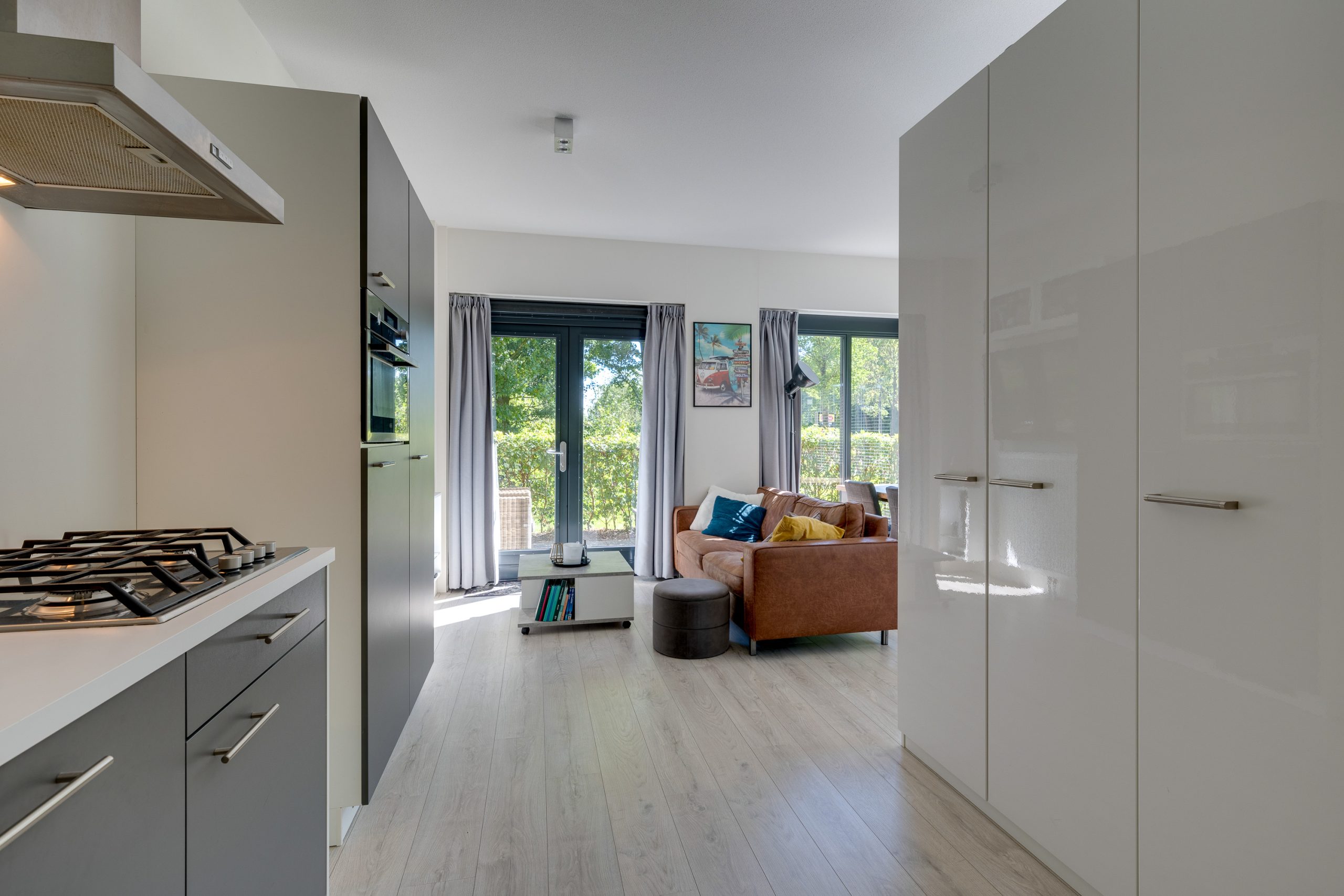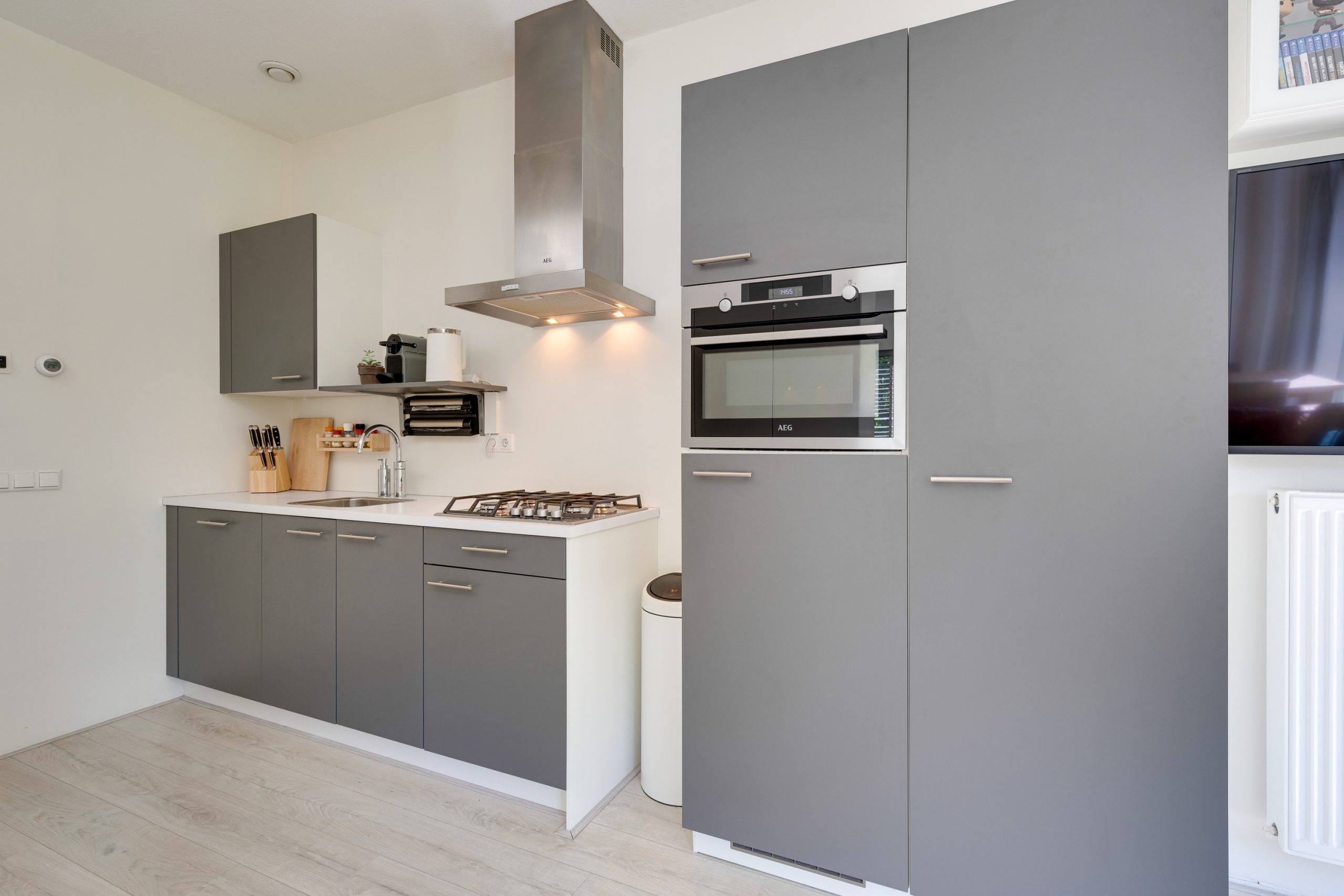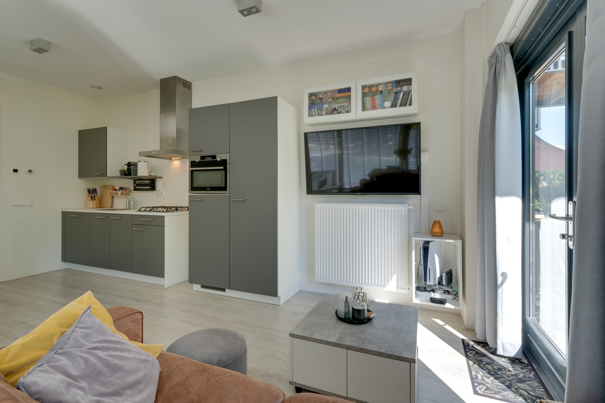 combi-oven en een koel-/vriescombinatie en een woonkamer/slaapkamer voorzien van
