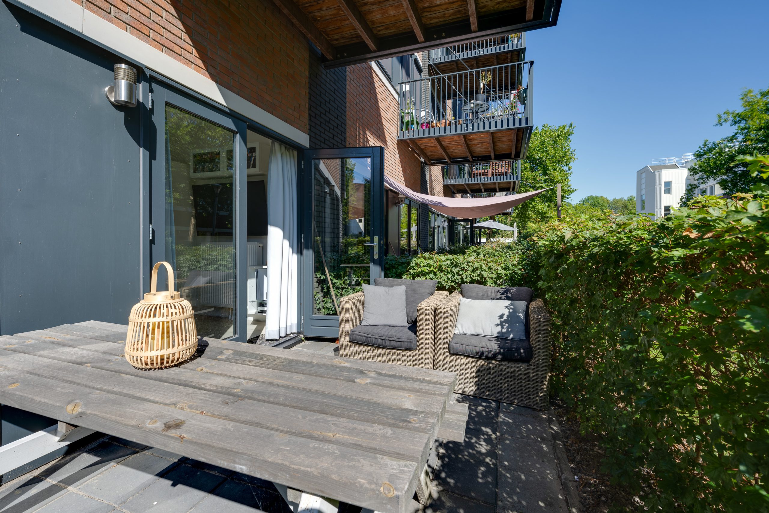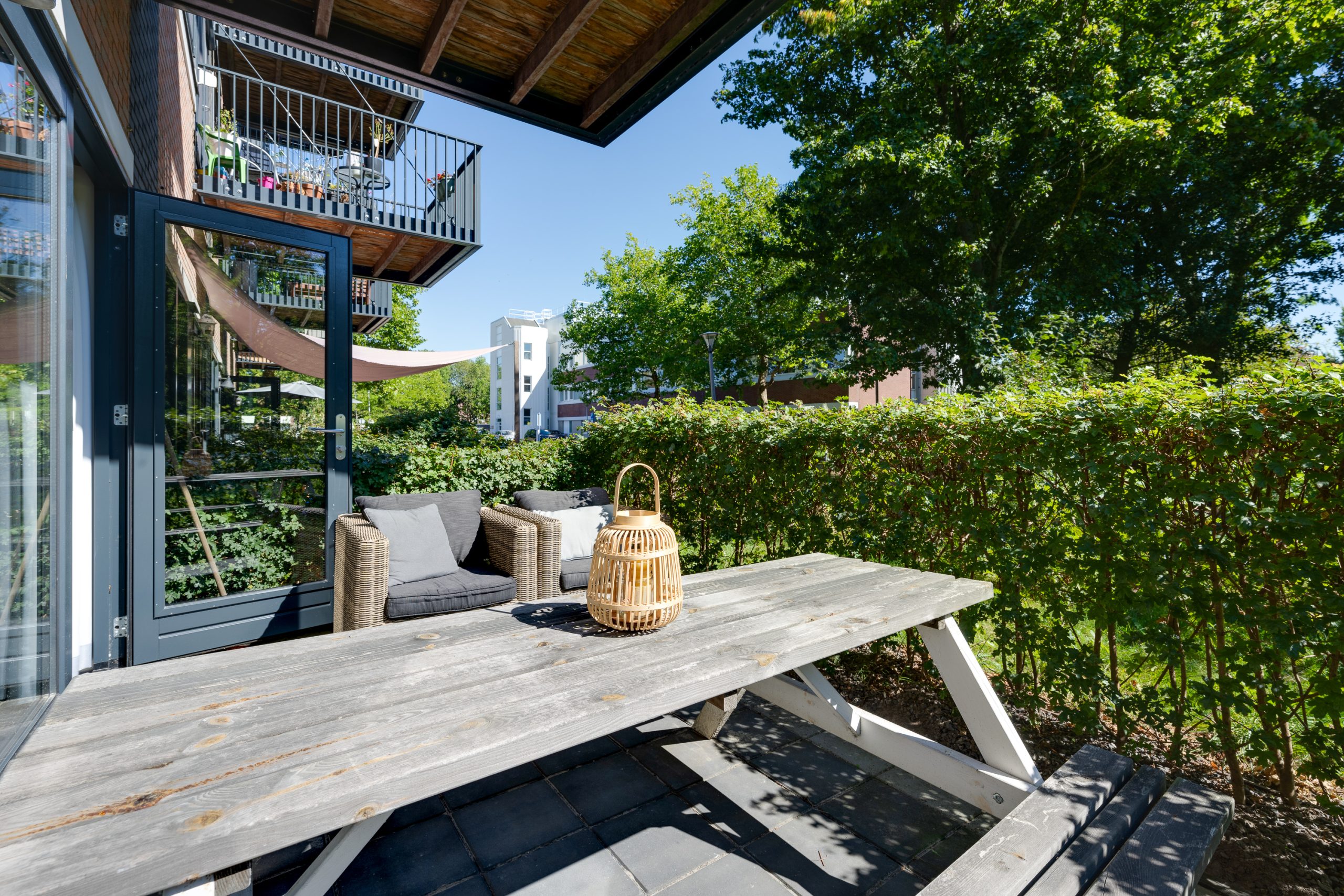 openslaande deuren naar de tuin. Het gehele appartement is voorzien van laminaatvloer. Daarnaast is er de beschikking over een separate gezamenlijke berging.